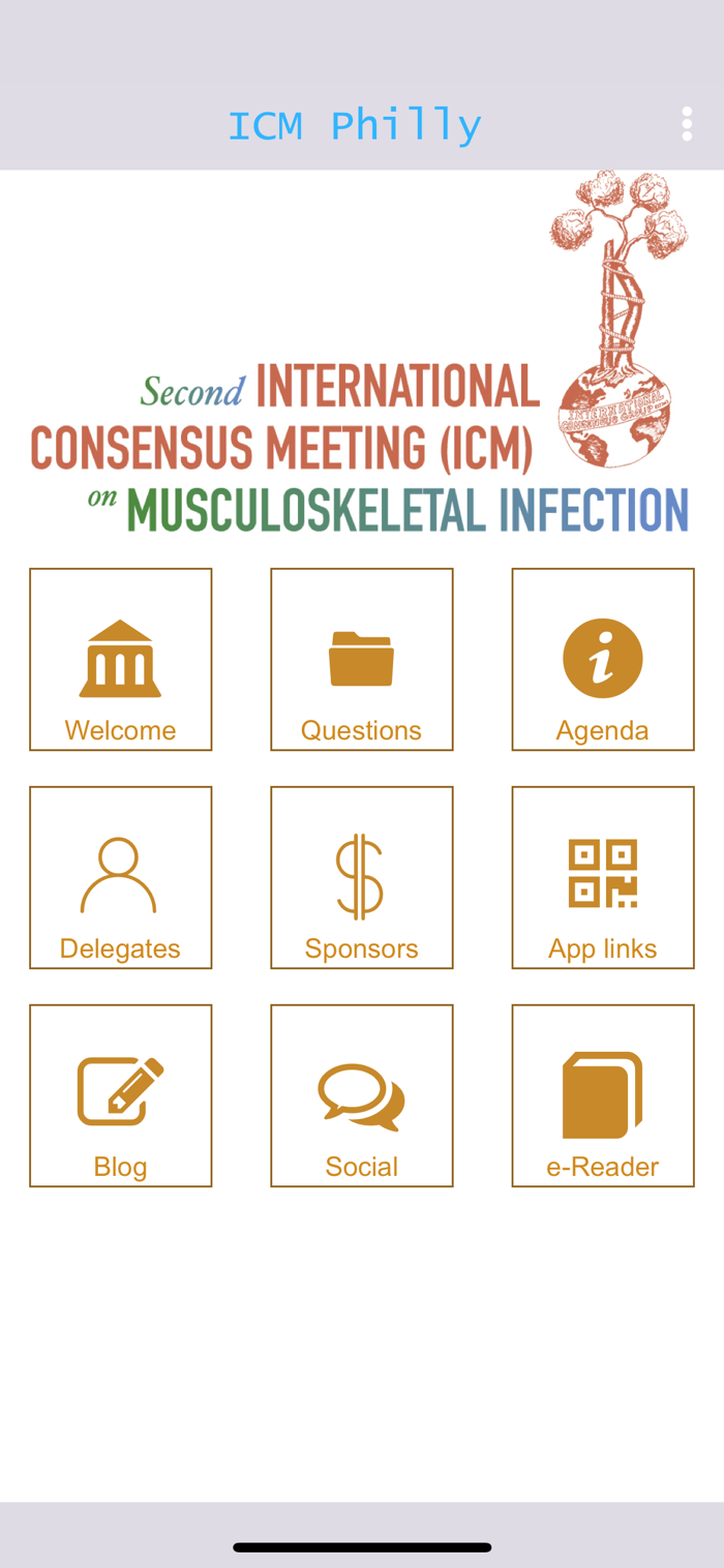 This is an app for the 2018 International Consensus Meeting for Periprosthetic Joint Infection (PJI) to be held in Philadelphia. This meeting is held under the leadership of Dr. Javad Parvizi MD FRCS and Dr.Thorsten Gehrke MD. Almost 500 plus international specialists in the Orthopaedic infections meet, discuss and vote on various questions with regards to PJI. This event is held every five years and issues guidance on current diagnosis and treatment and also the direction of future research in this field.