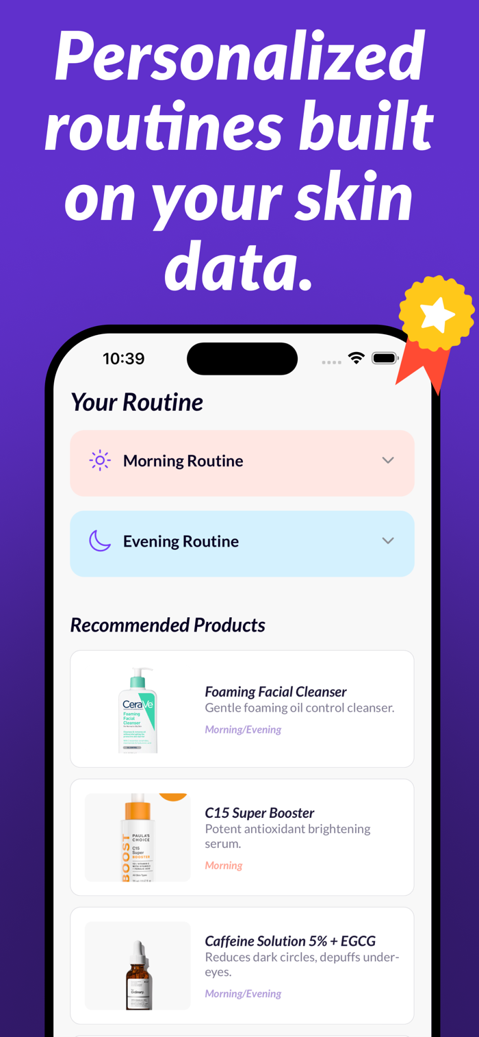 In just seconds, you’ll get a better understanding of how your skin looks today and what can help level up your appearance. Your routine is tailored to your concerns, your goals, your budget, and what matters most to you, no guesswork, no wasted money on useless products.