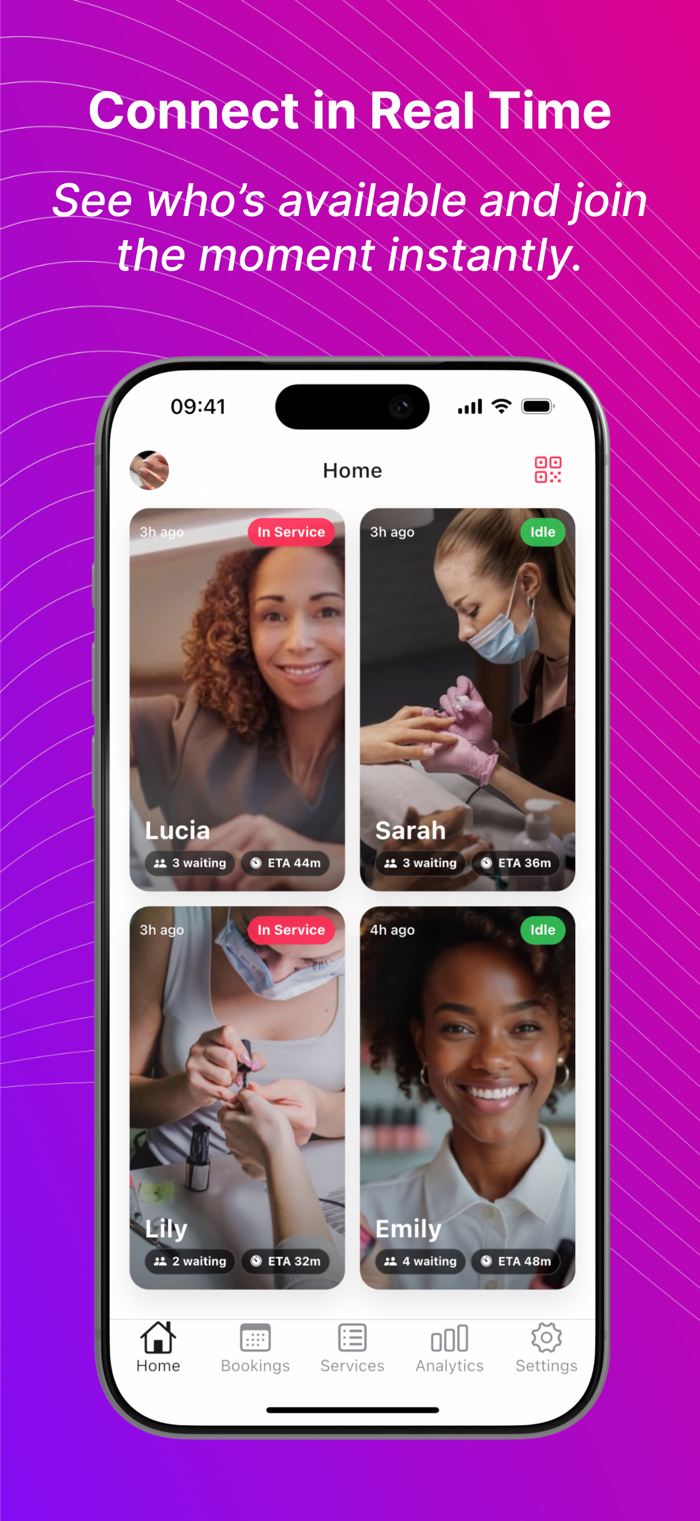 这款应用专为小企业打造,能帮您掌控客户流程、管理预约与到店客户。它可在一处整合服务、员工和日程安排,创建服务列表、分配团队成员、设置工作时间并生成秒连客户的二维码。客户扫码或接收链接,无需安装应用就能打开界面,快速加入排队或预订合适时间。您能实时监控客户流量,随时调整日程、更新服务,减少不确定性,营造更高效平静的环境。