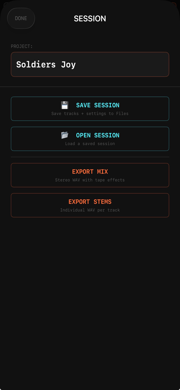 RollTape turns your iPhone into a four-track recorder. Lay down a rhythm, overdub a melody, add a harmony, stack a lead — all from your pocket.