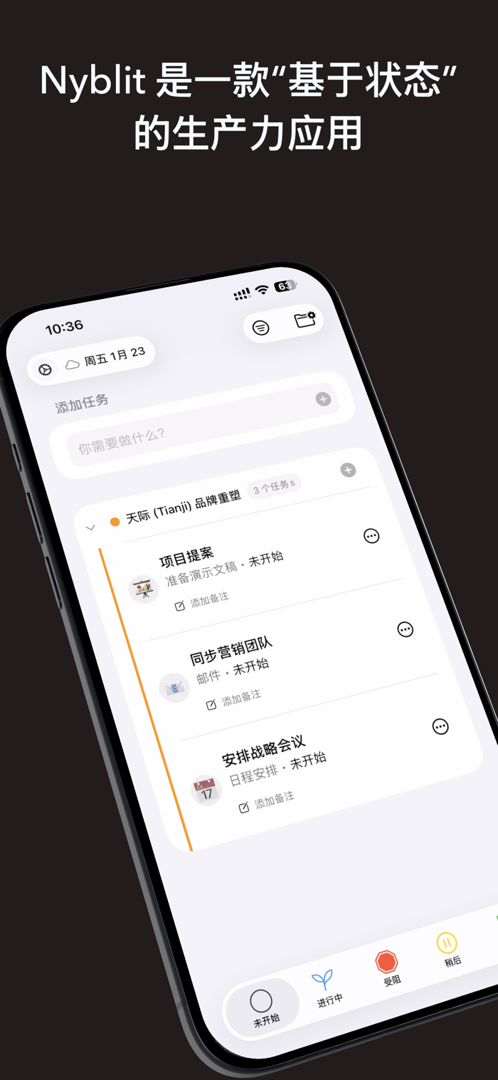 Nyblit是创新型“基于状态”任务管理器,与普通待办事项App不同,它能追踪任务确切状态,过滤“受阻”“稍后”任务,留下可执行列表,让一天井然有序。由ADHD开发者打造,功能强大灵活,可组织任务成项目、用智能计时器推迟任务、与Apple日历同步截止日期等,通过iCloud安全同步。免费体验,支持15个活跃任务,全平台通用一次付费无订阅,界面简洁,深色浅色模式皆美观。