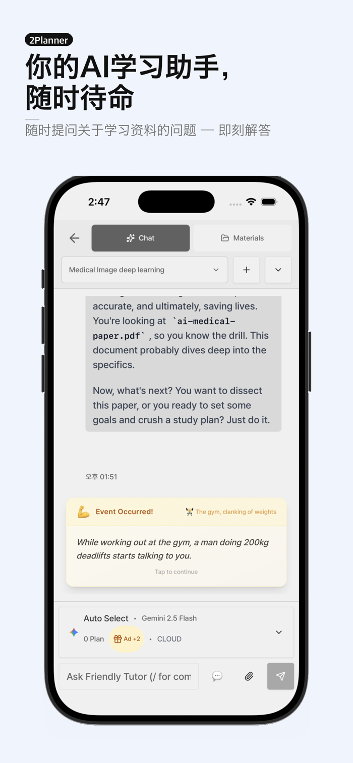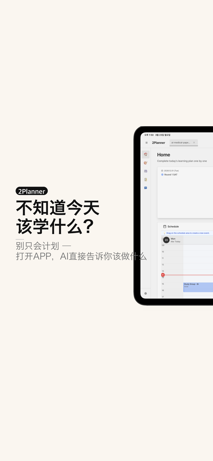 2Planner将AI导师、科学复习、考试分析整合到一个应用中,管理学习的每一个环节。