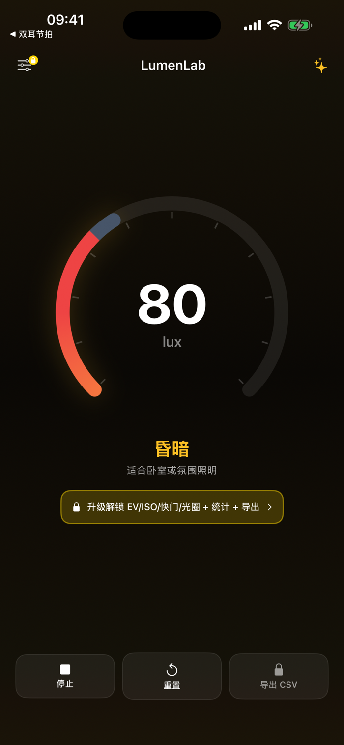 • CSV 导出全会话日志(时间戳、lux、EV)