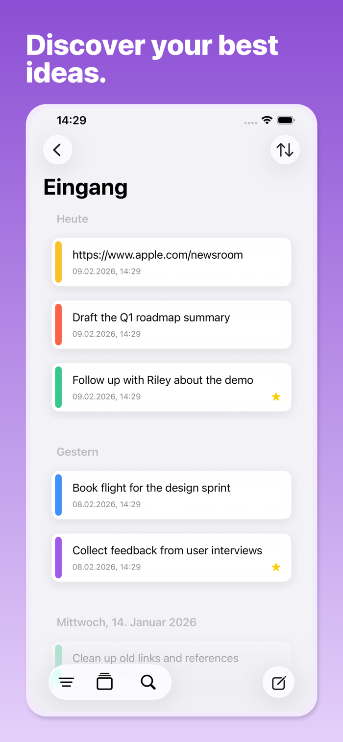No overwhelming folder structures. No tag gymnastics. Just colors and favorites—because you don't need another complicated system to manage.