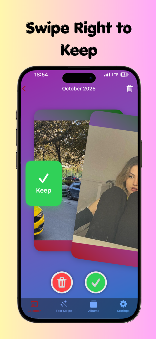 Swipe Clean能快速整理和清理照片库。其核心功能包括:右滑保留喜爱照片,左滑删除 unwanted 照片,有闪电般清理体验;能即时查看节省空间量,删除相似和重复照片以回收数GB存储空间;几分钟可清理数百张照片,通过直观手势快速查看,无学习曲线,界面简洁有效,无复杂选项,能立即出结果,帮您掌控照片库。