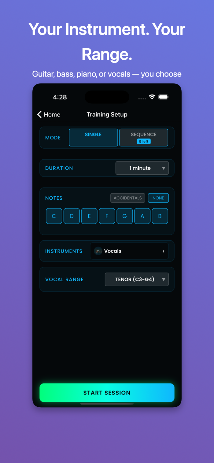 NoteSchool是一款音符训练游戏,展示目标音符,玩家演奏或演唱后,实时音高检测即时打分,非单纯调音器。玩法是从玩家控制的音符池中抽取一系列目标音符,玩家演奏或演唱,保持稳定,检测匹配后进入下一个,失误或犹豫则连胜重置,有计时,分数取决于准确性、速度和连胜长度。训练模式包括单音符(可自定义乐器、音域等,随机抽取练习)和序列(高级版有和弦转位)。