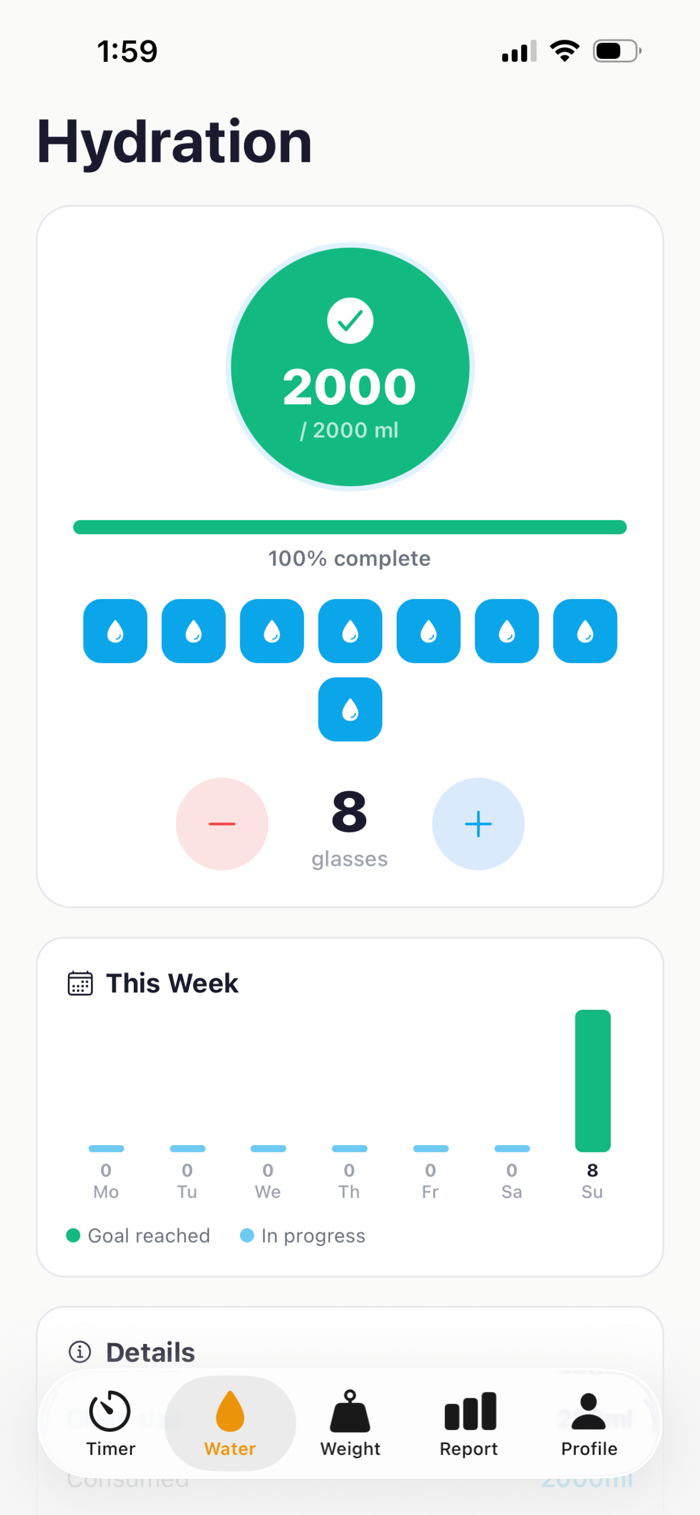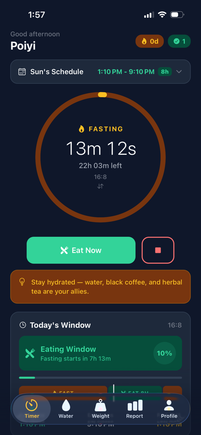 FastTrack让间歇性禁食轻松实现。有实时禁食定时器,含6种 proven计划,动态岛和锁屏有实时倒计时,后台定时器持续运行,自动切换禁食与进食阶段;能全面追踪进度,提供每日、每周及6个月禁食分析等;可记录体重及趋势,含BMI计算器与个性化健康见解;还能追踪水分摄入,界面美观无 clutter。
