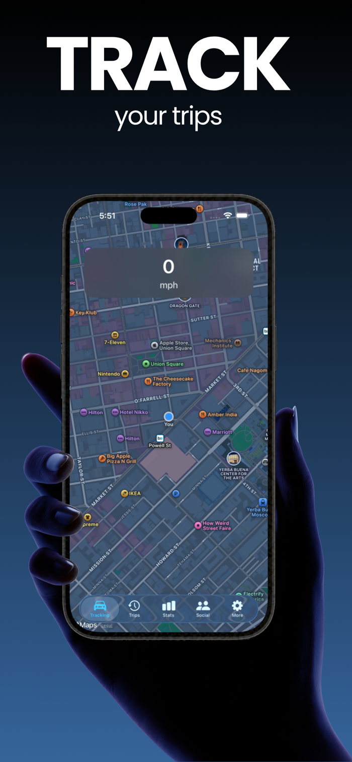 See where you drove, how long each trip took, how far you went, your average and top speed, and whether a route saved or added time. TR1P is built to make trip tracking feel automatic, simple, and modern.