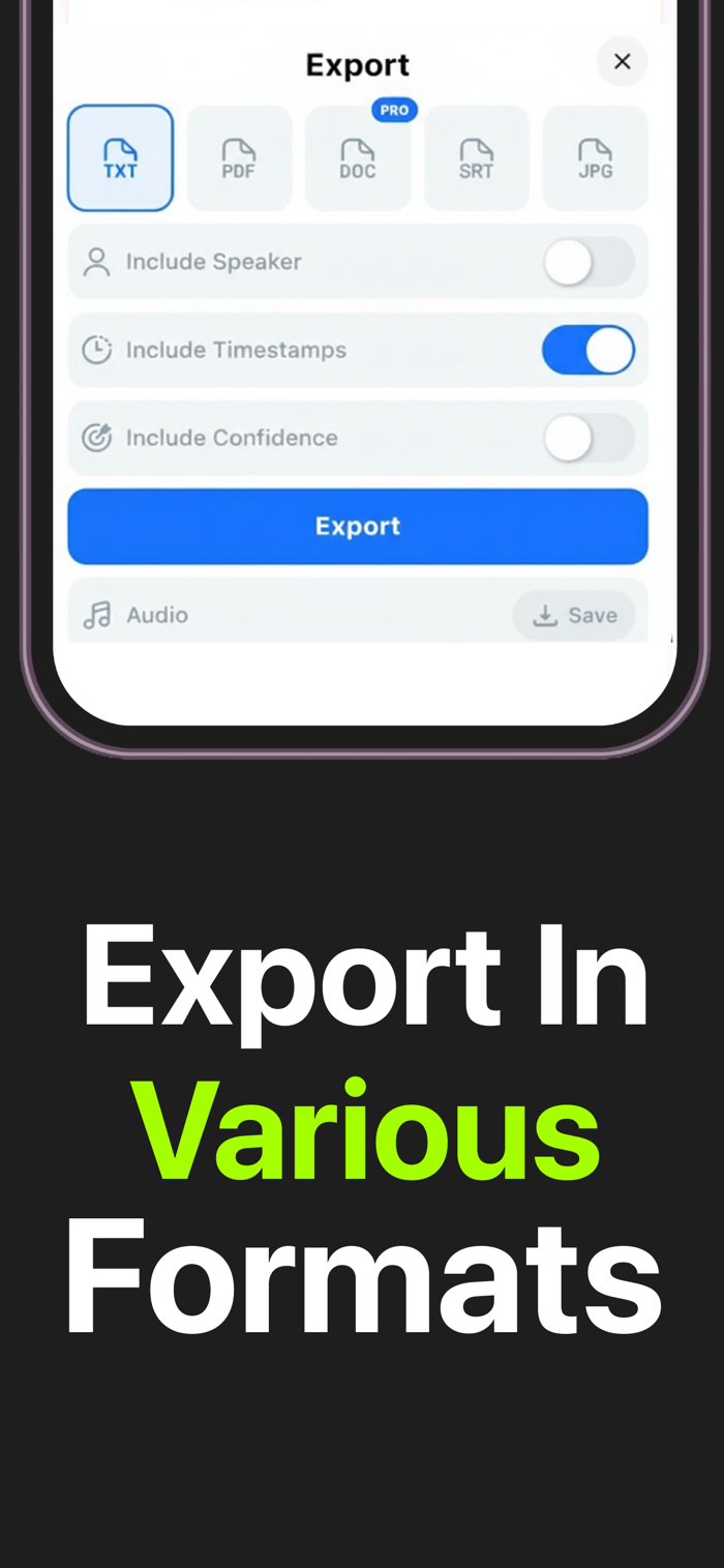 High Accuracy & Speed – Reliable transcription even in challenging audio conditions, saving time and effort.