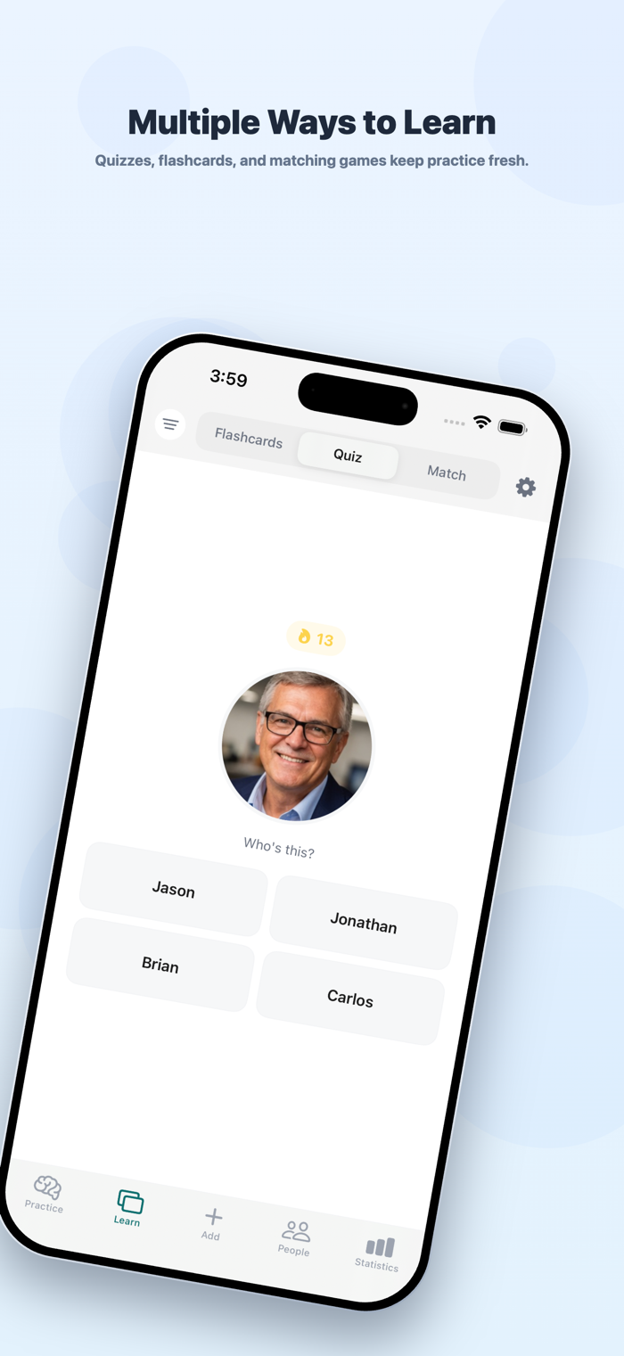 姓名牌可帮助你记住所遇之人的名字。添加照片和名字,借助经研究验证的算法针对难记的名字进行练习。从各种来源添加人员,通过测验、抽认卡和游戏进行练习。该应用会跟踪你的进度,让你创建卡片组、测验群组。它完全离线,可在任何地方使用,比如地铁或飞机上。