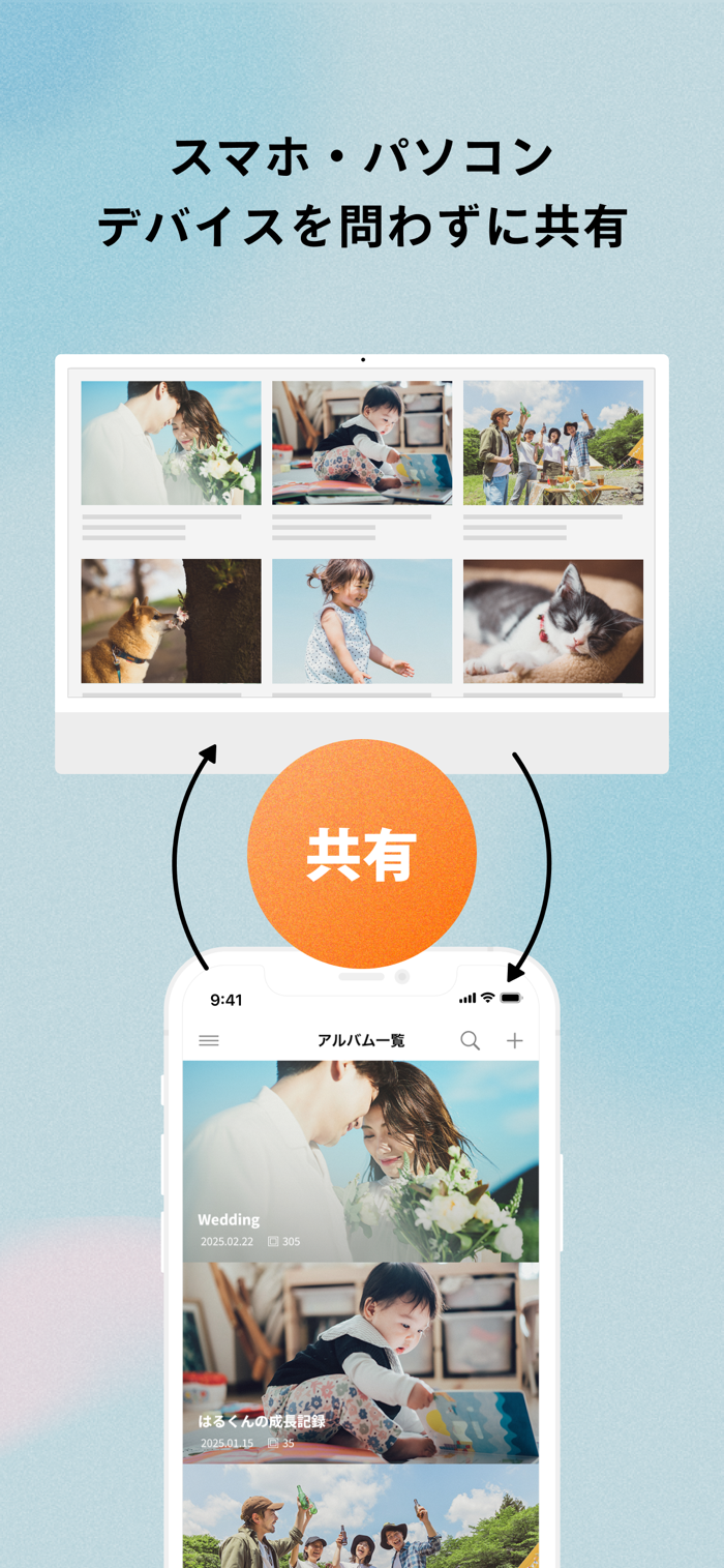 イベントや日常の写真をプライベートにも公開にも自在に共有できるオンラインアルバムアプリ。
