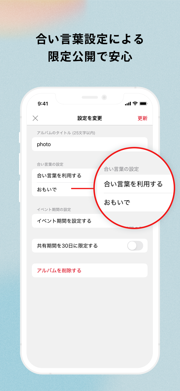 ・【合い言葉】や【期間限定公開】でプライベートな共有が可能