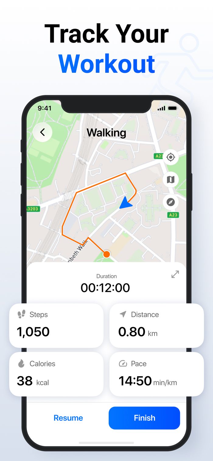 Record walking sessions and workouts to see distance time and calories burned. StepUp helps you track walking workouts and general activity without complex setup.