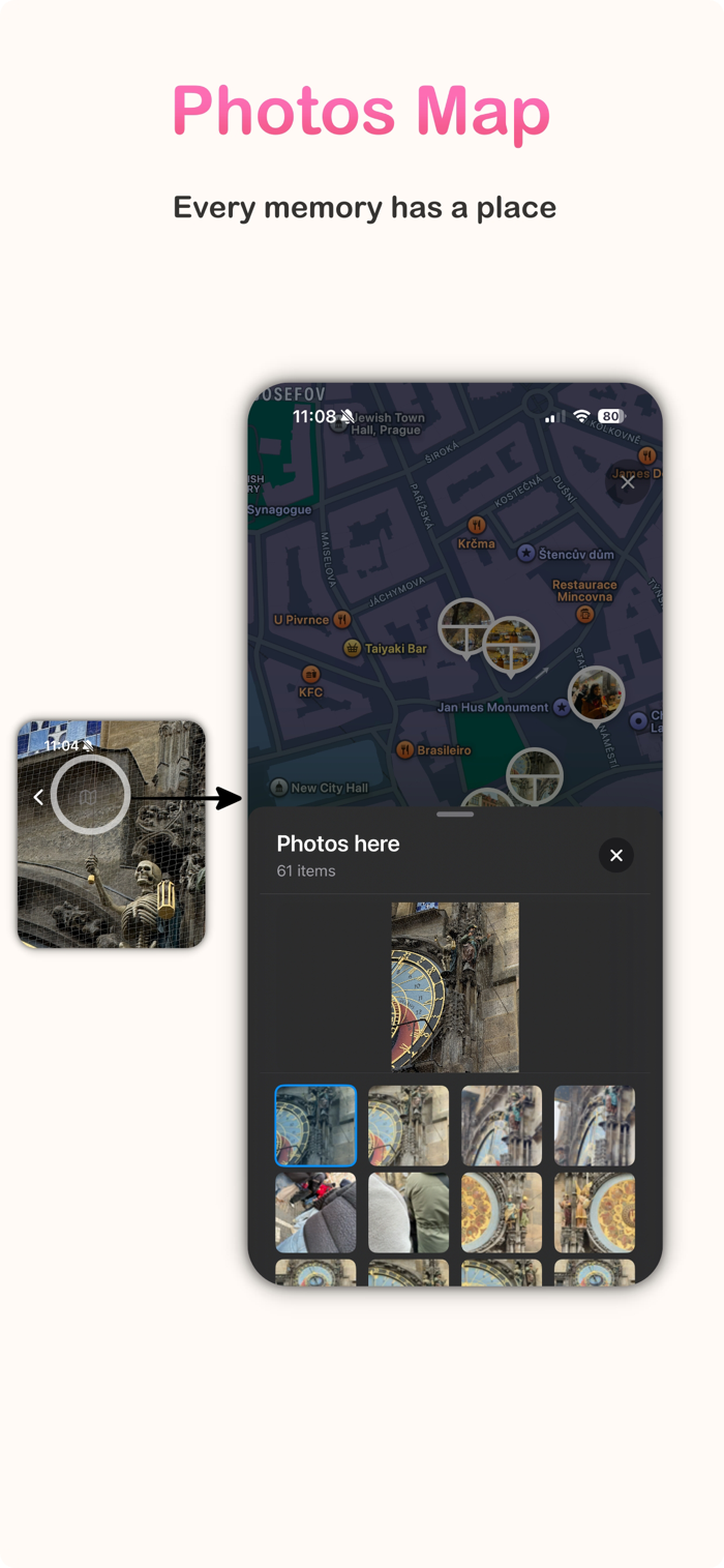 Trips: Automatically groups your travel memories by country so you can jump back into each trip instantly.
