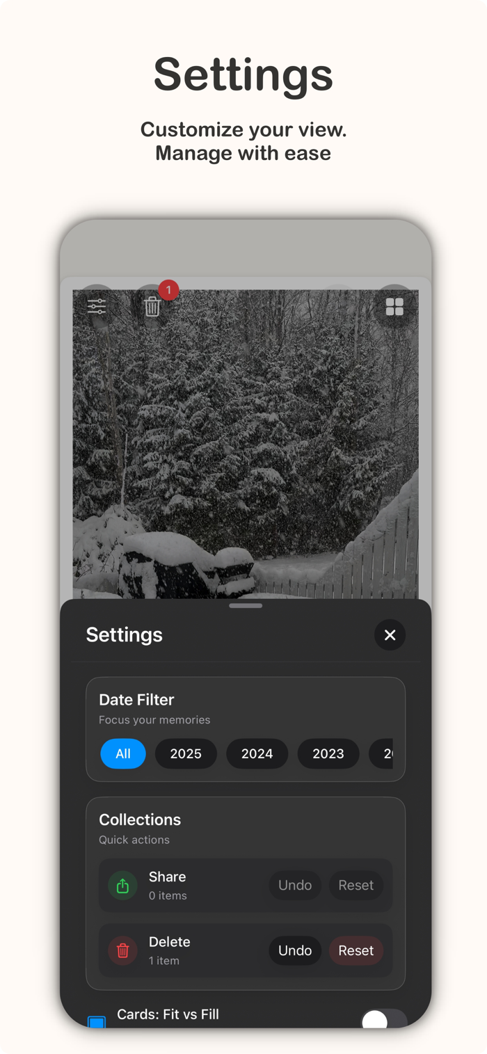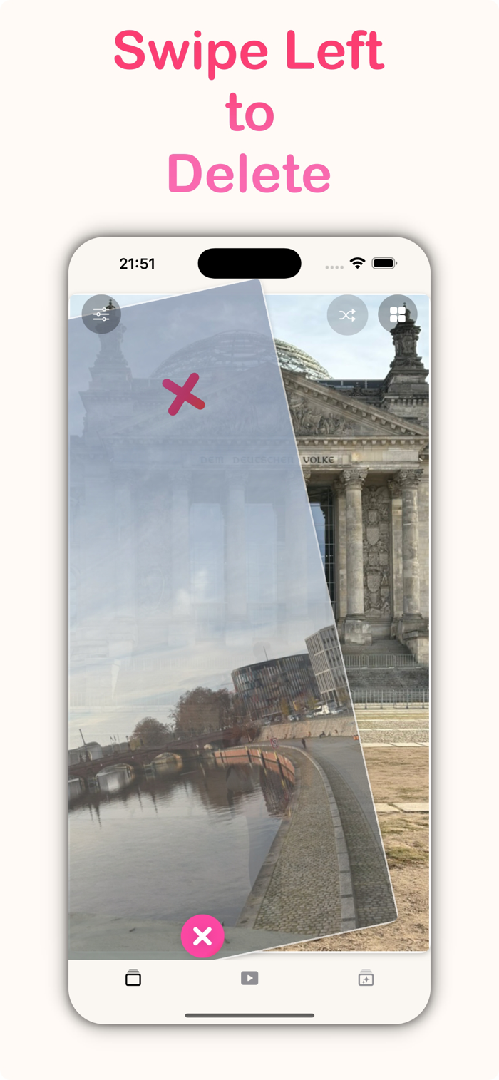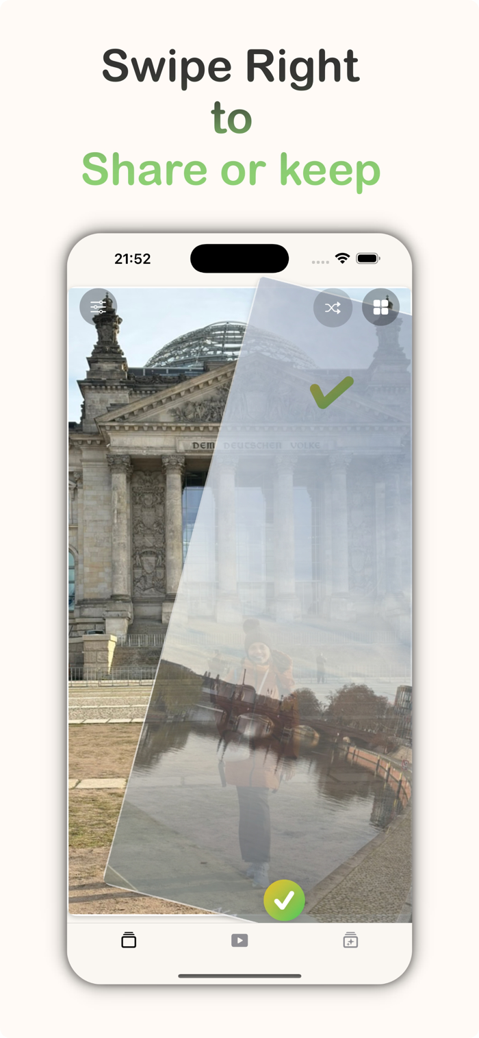 Swipe-to-review: Quickly go through photos and videos and keep only the best.