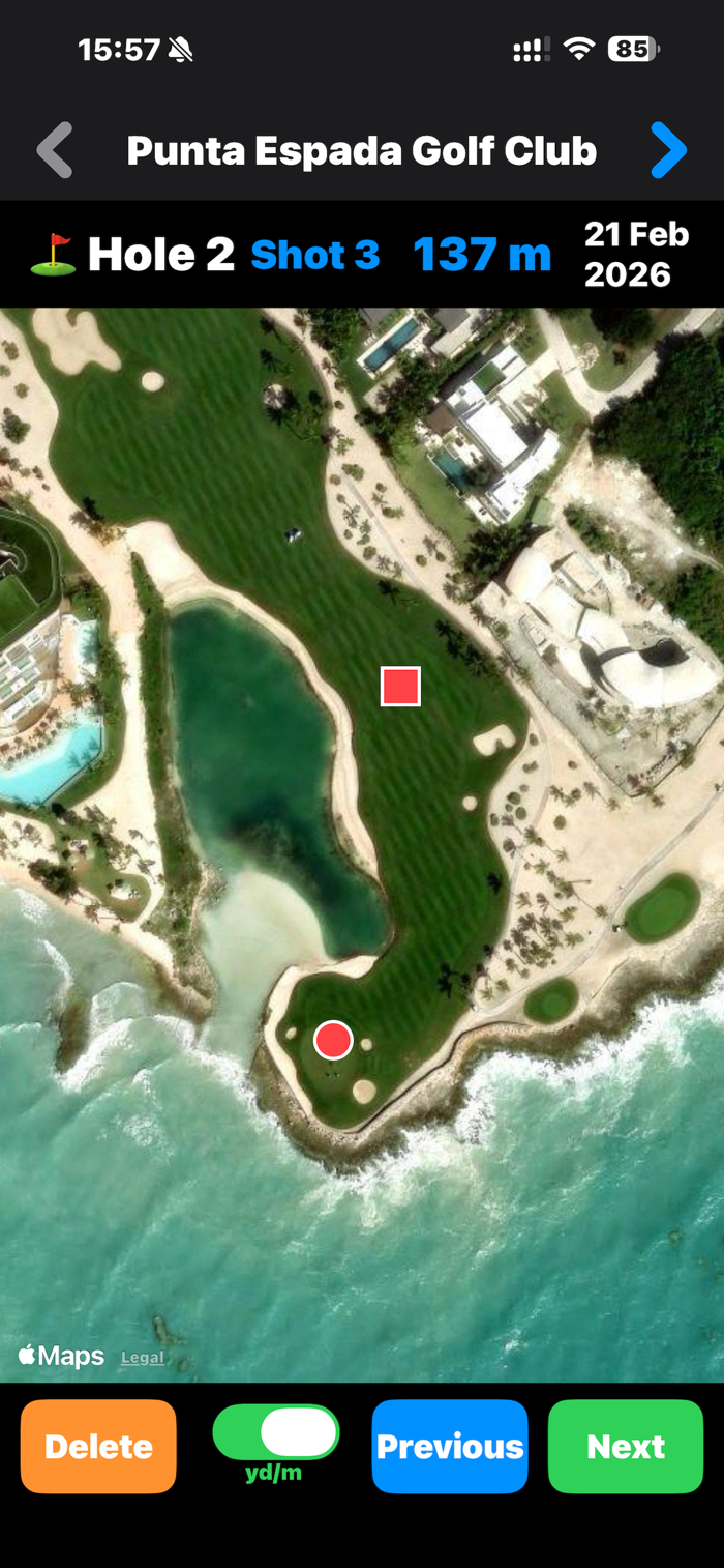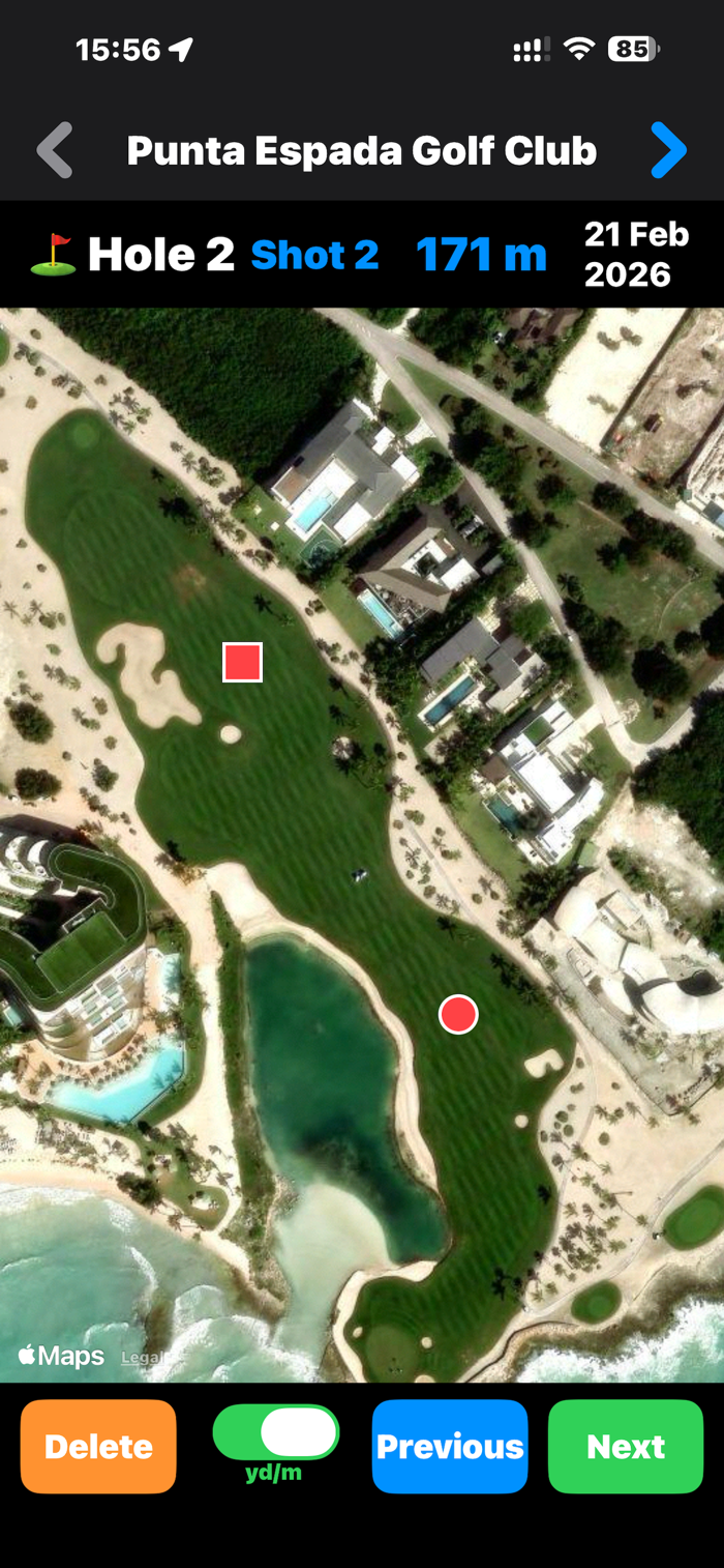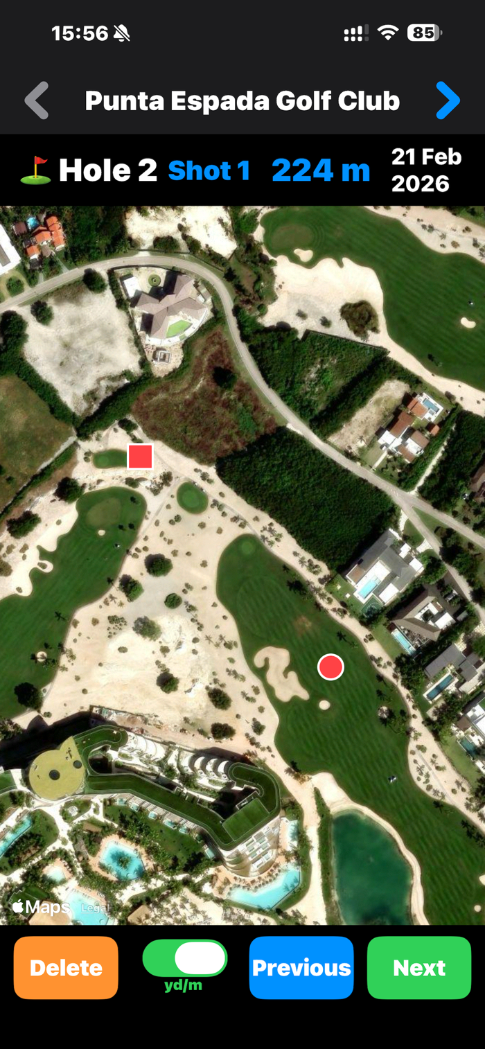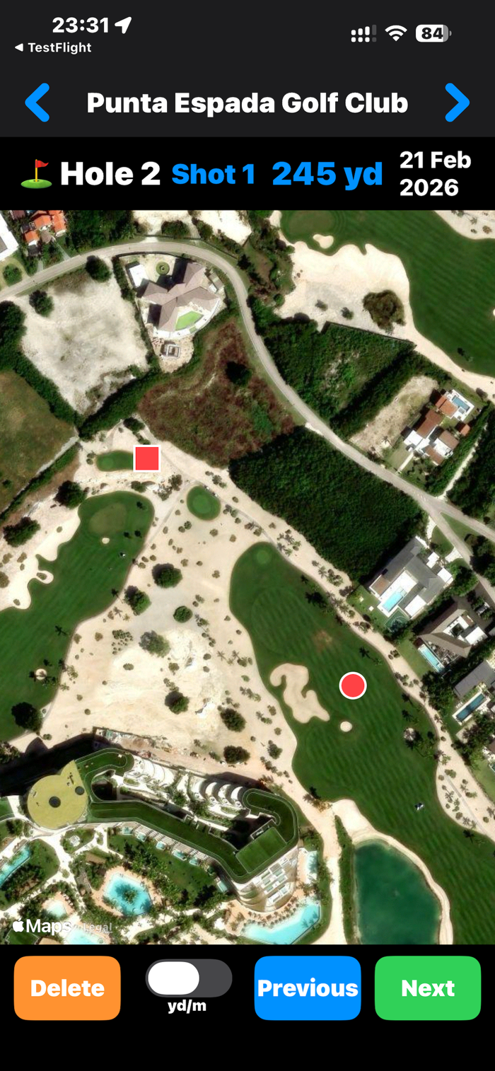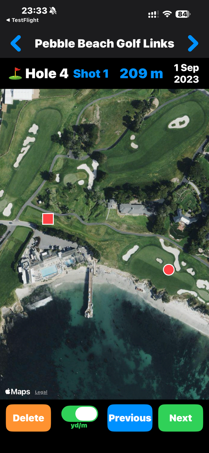 4. The distance from 1 → 2 records your tee shot, and 2 → 3 records your second shot.