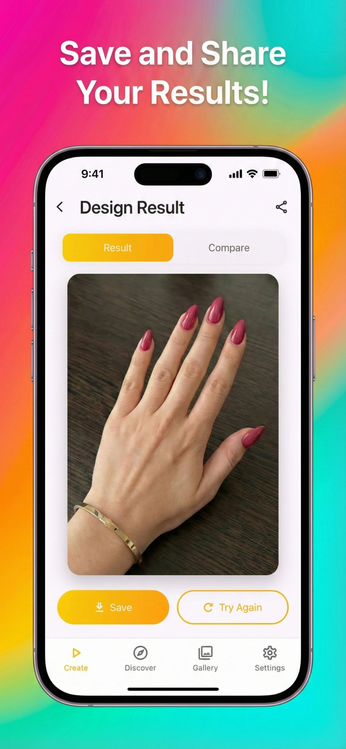 保存你喜欢的样子,并在下次预约时展示给你的美甲师。你也可以与朋友分享你的虚拟美甲。