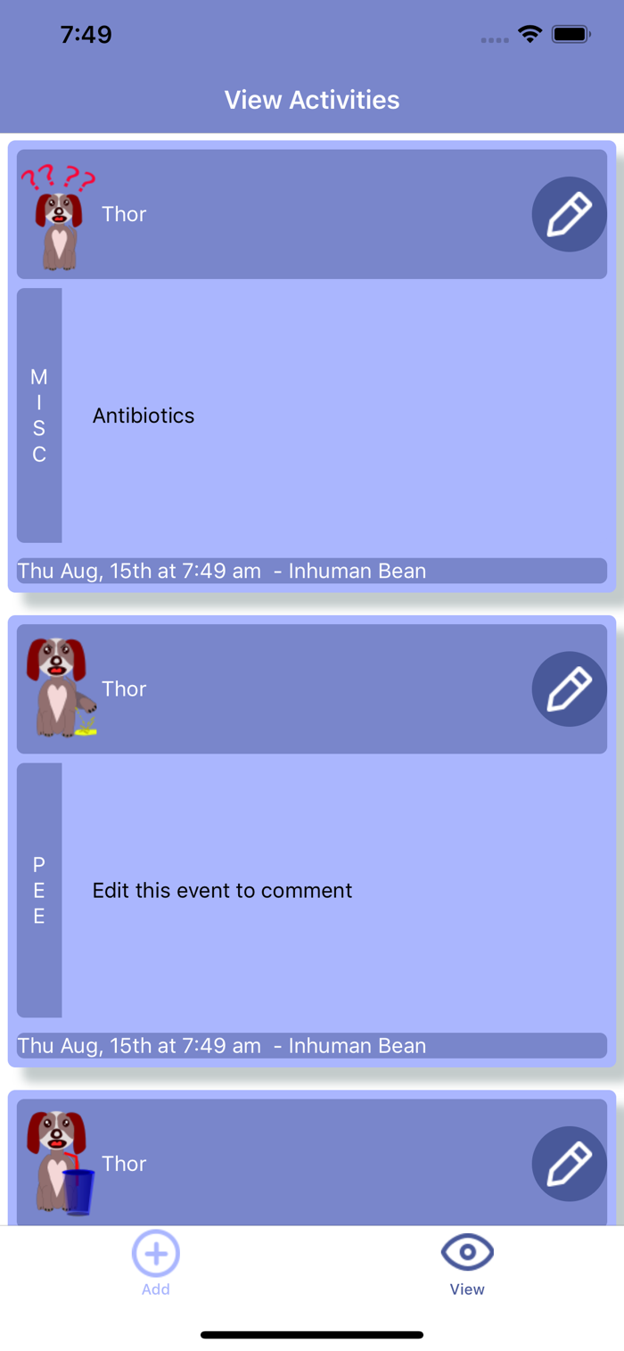 Add pets and add Guardians for your pets. Share tracking information with guardians and build a community of care around your pet. We track patterns and inform you if there are any changes over time that potentially could impact the health of your pet.
