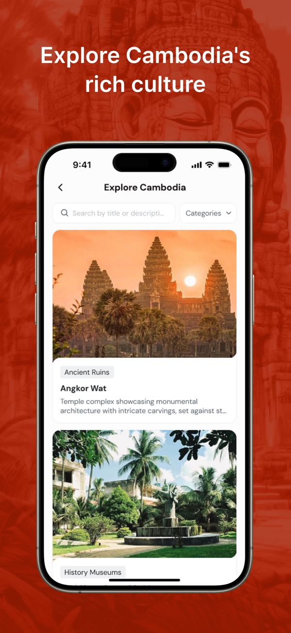 • Explore Cambodia (Travel Recommendations): Offers suggested destinations and nearby attractions to enhance travelers' overall journey and itinerary planning.