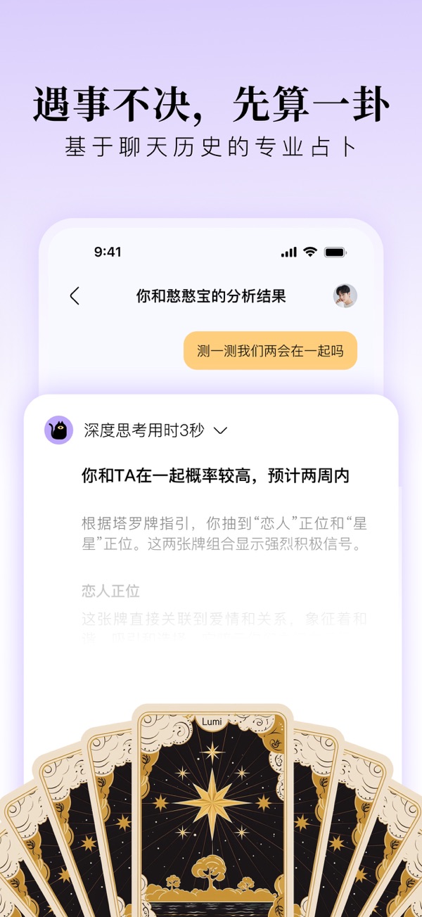 别再内耗了!Lumi融合前沿AI多模态技术、深度心理学与神秘学洞察,做你最贴心的情感分析师,让你在关系中看得更清,走得更稳。