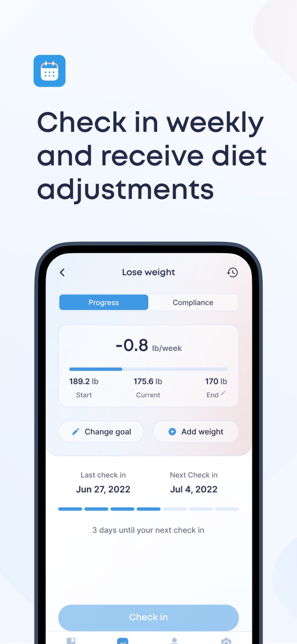 此外,随着你的进展,碳饮食教练会调整计划以优化效果。如果你遇到平台期或停滞不前,碳饮食教练会做出调整,让你朝着目标继续前进,就像任何优秀的教练一样。我们的教练系统采用营养科学的最新技术,以确保你尽可能获得最佳效果。