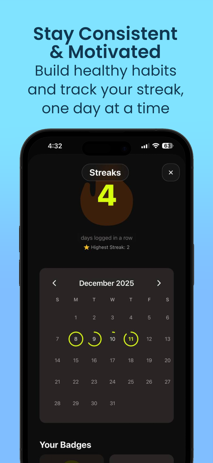 Consistency Streaks: Built-in motivation to keep you logging every day.