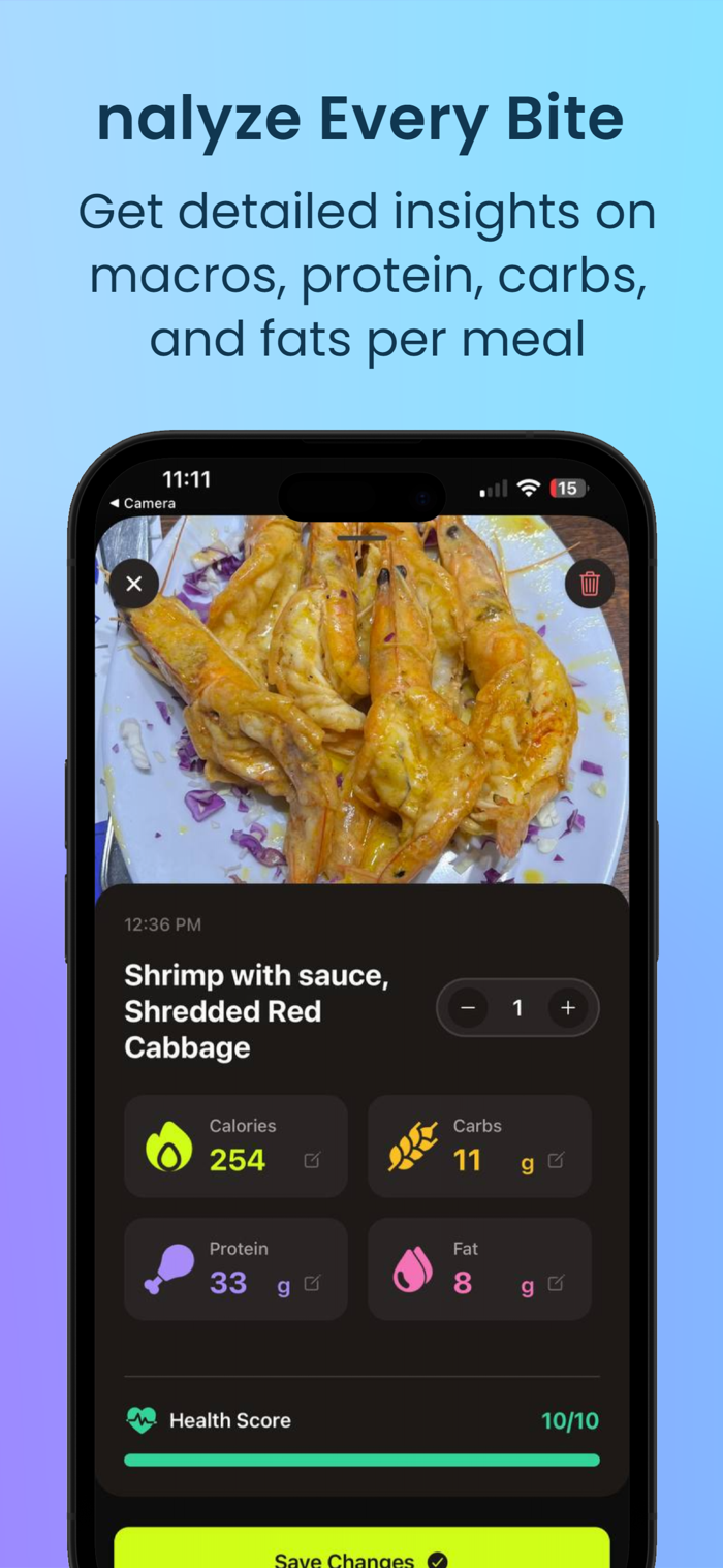 AI Vision: Snap a photo to calculate calories and identify nutrients instantly (Subscription Required).