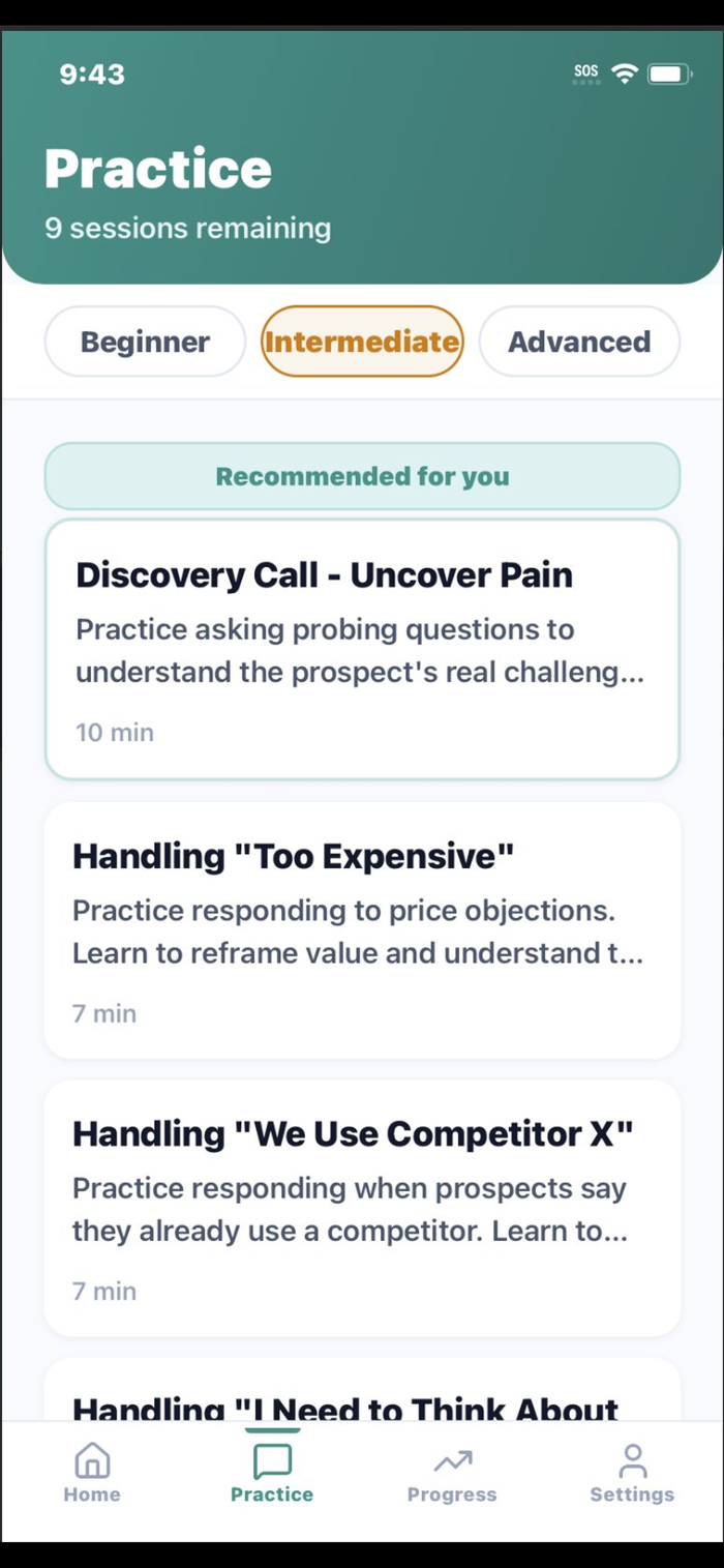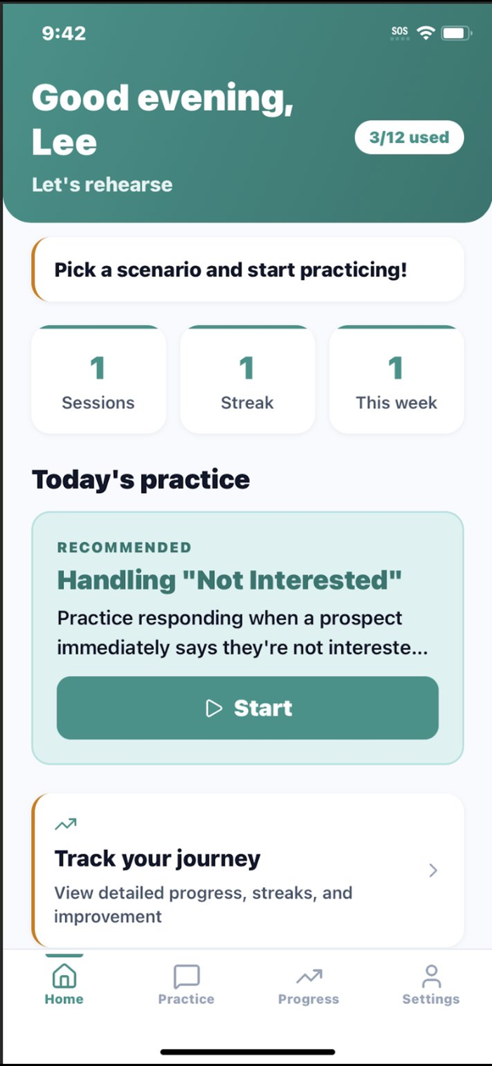 Whether you're new to sales or a seasoned pro looking to sharpen your skills, Rehearse gives you a safe space to practice until you're ready for the real thing.