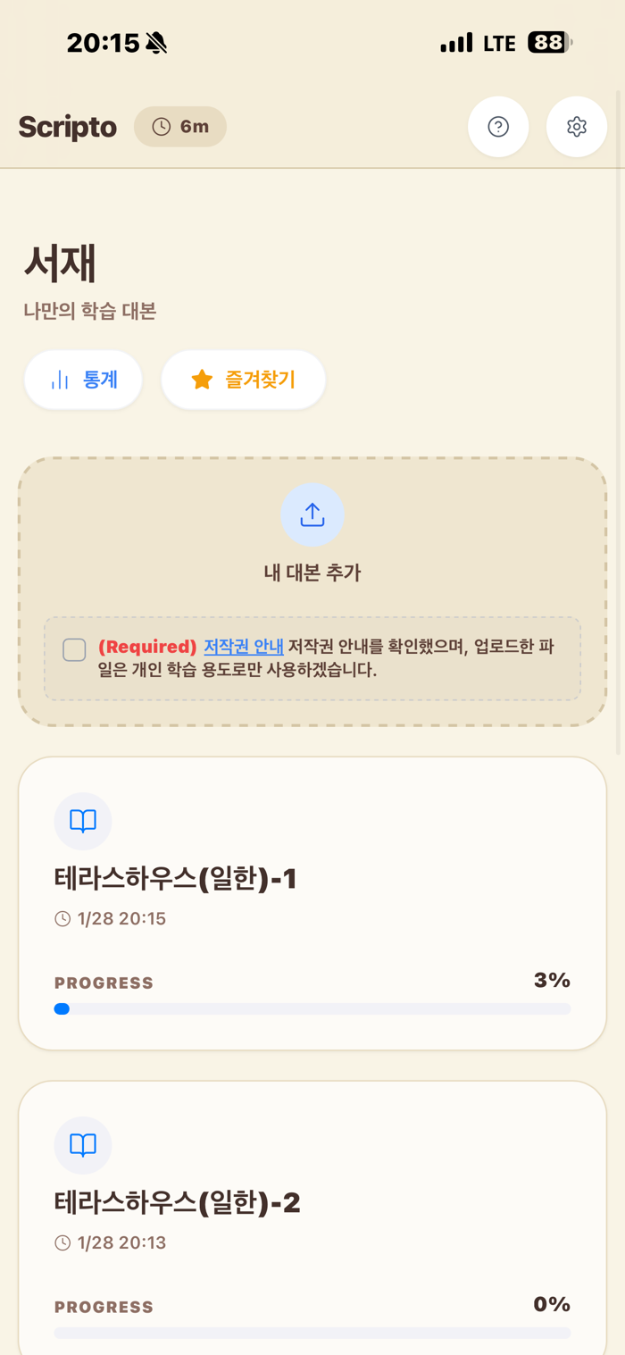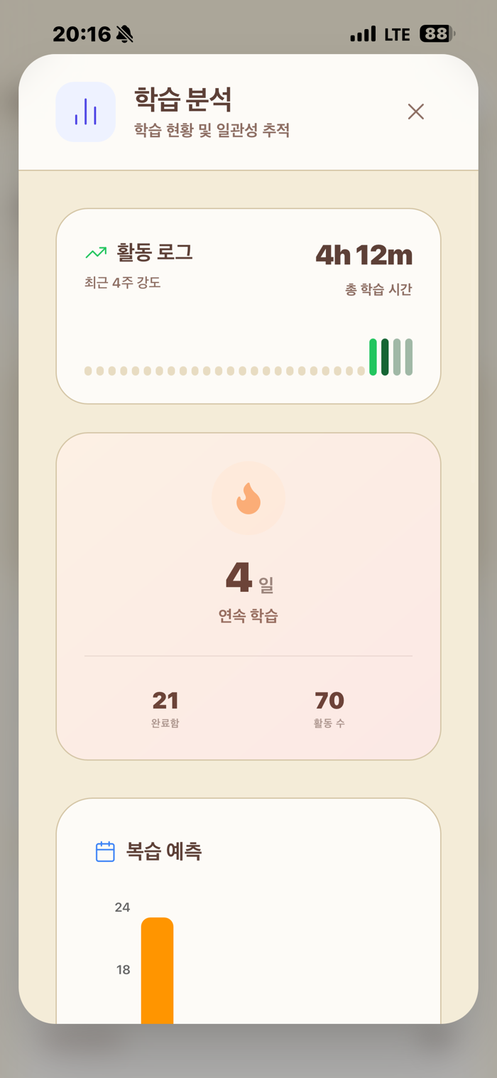 ・ 스마트 복습 시스템(SRS): 망각 곡선 이론에 기반하여 최적의 복습 타이밍을 자동으로 알려주어 장기 기억을 돕습니다.