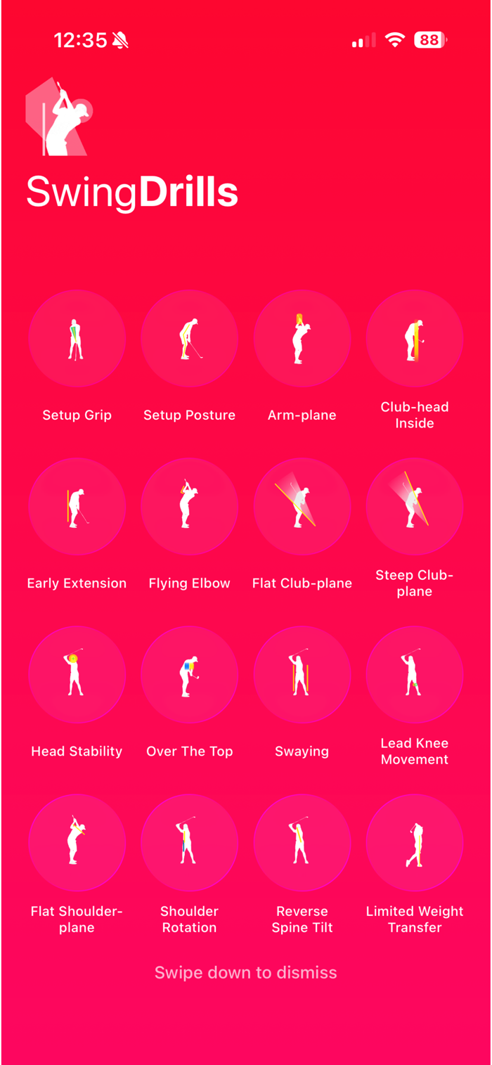 Swing Drills : Master Your Golf Swing with live drills that give you immediate feedback. Our innovative golf app, packed with cutting-edge features, empowers golfers of all levels to improve their swings during practice sessions. Whether you’re a golf enthusiast, inspired by PGA Tour Pro's, or seeking professional golf coaching, Swing Drills provides the tools you need for golf training, and performance enhancement.