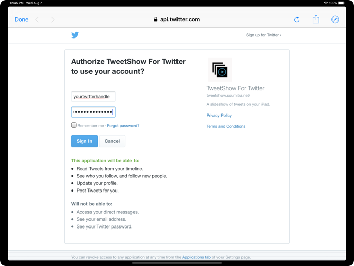 TweetShow turns your Twitter timeline into a beautiful slideshow presentation on your iPad.