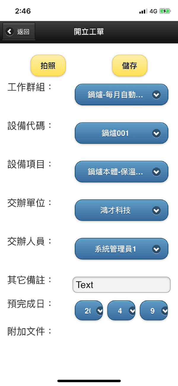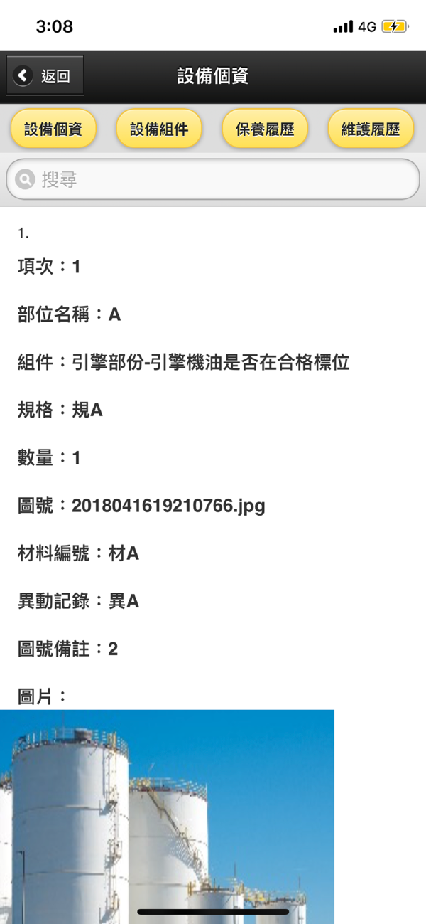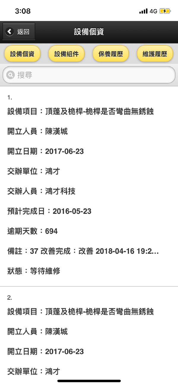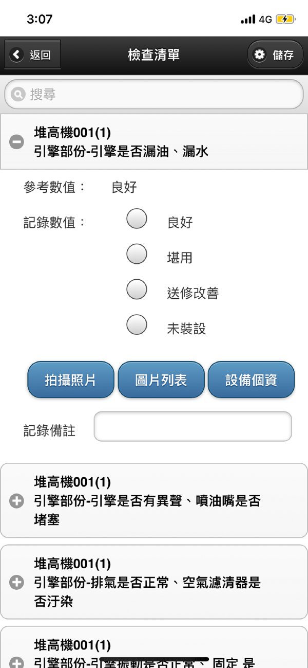 该设备用于设备保养,可用于设备维护、巡查点检等。支持线上/自动派工、保养、维护,上传检查清单即可现场工作。支持UWB等多种到位依据,具备拍照、编修、图档压缩功能,有影音导引,能推播紧急等通知,支持离线及保存历史资料,整合请送修、库存、物料管理及蓝牙永久侦测装置。