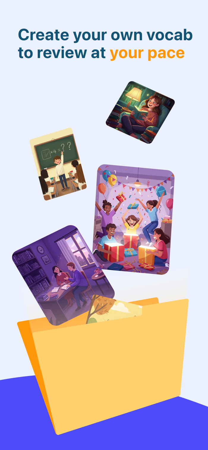 - Daily Vocab Challenges – Earn streaks, XP, and collectible cards through fun, gamified drills that fit any schedule.