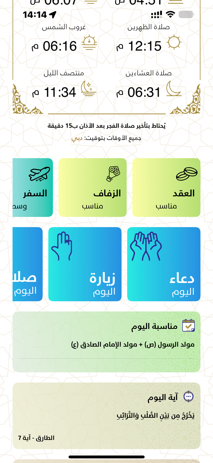 It is updated with the Prayer Timings, Qibla direction in addition to displaying the nearest mosque among the mosques affiliated with the Council.