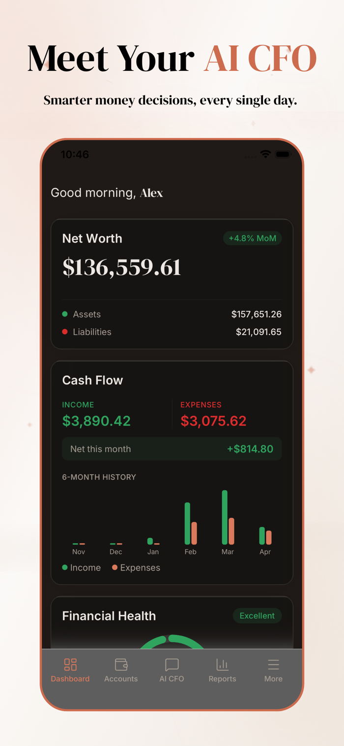 Color-coded and updated in real time. Green means you're thriving. Red means your AI CFO has actionable advice waiting.