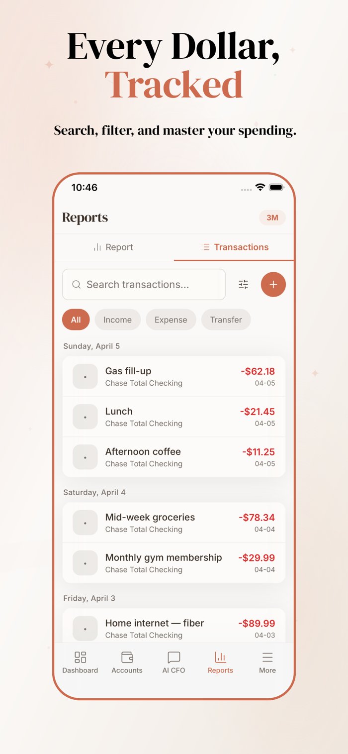 Your AI CFO can even log multiple transactions in one message — just say what you spent. No more tedious manual entry.