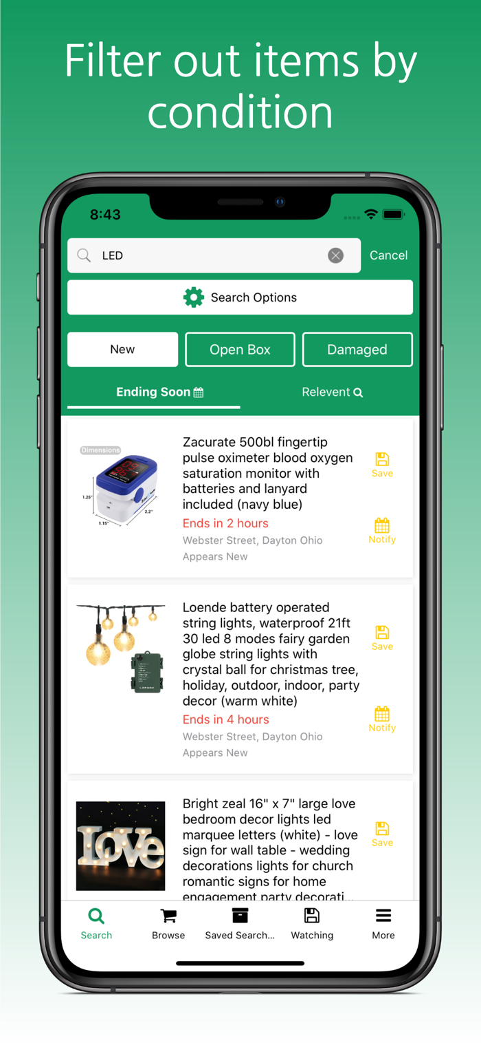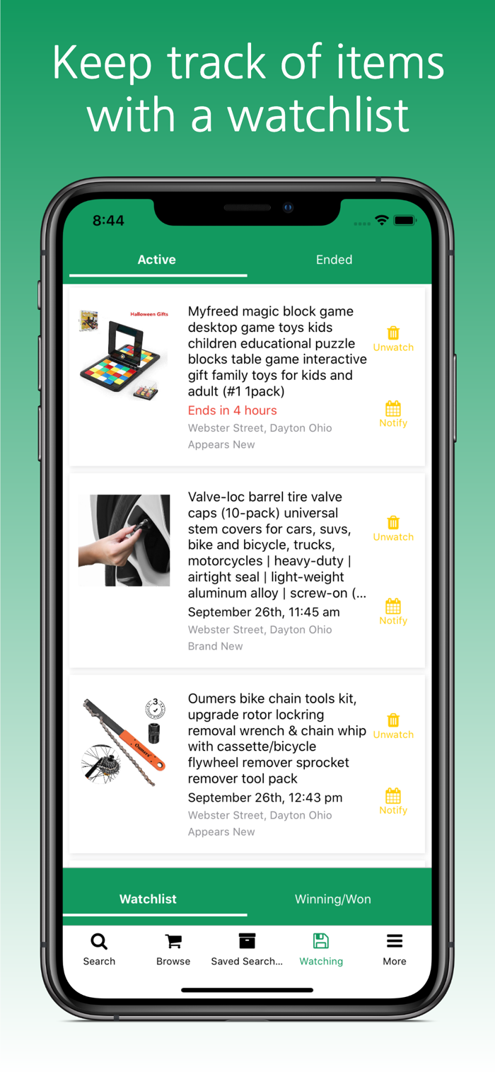 • Save items to the App Watchlist, and use the app watchlist to keep track of item's you're interested in.