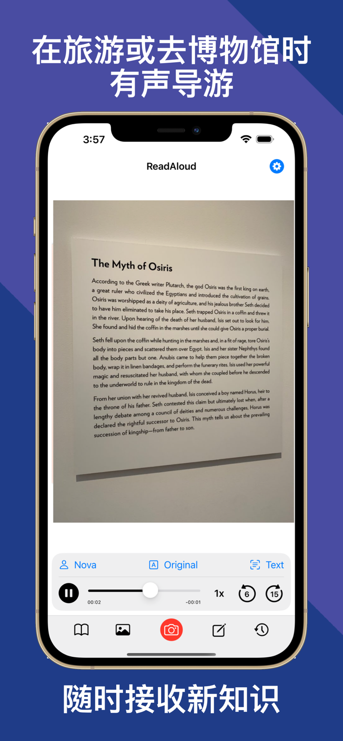 BookPod朗读器是文本转语音的朗读、复读软件,能将文本、书籍等转换为有声读物。有AI加持,声音流畅接近人声。可充当旅游和博物馆讲解器,支持扫描图书、翻译阅读任何语言。具备朗读、讲解、复读、翻译阅读、语速调整功能,数据存于私人iCloud云盘并在多设备同步,还可用于外语学习练习听力,在母语和第二语言间灵活切换。