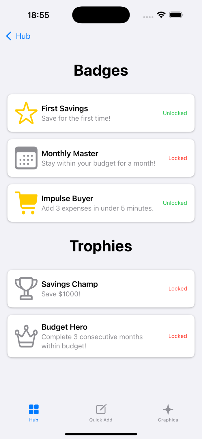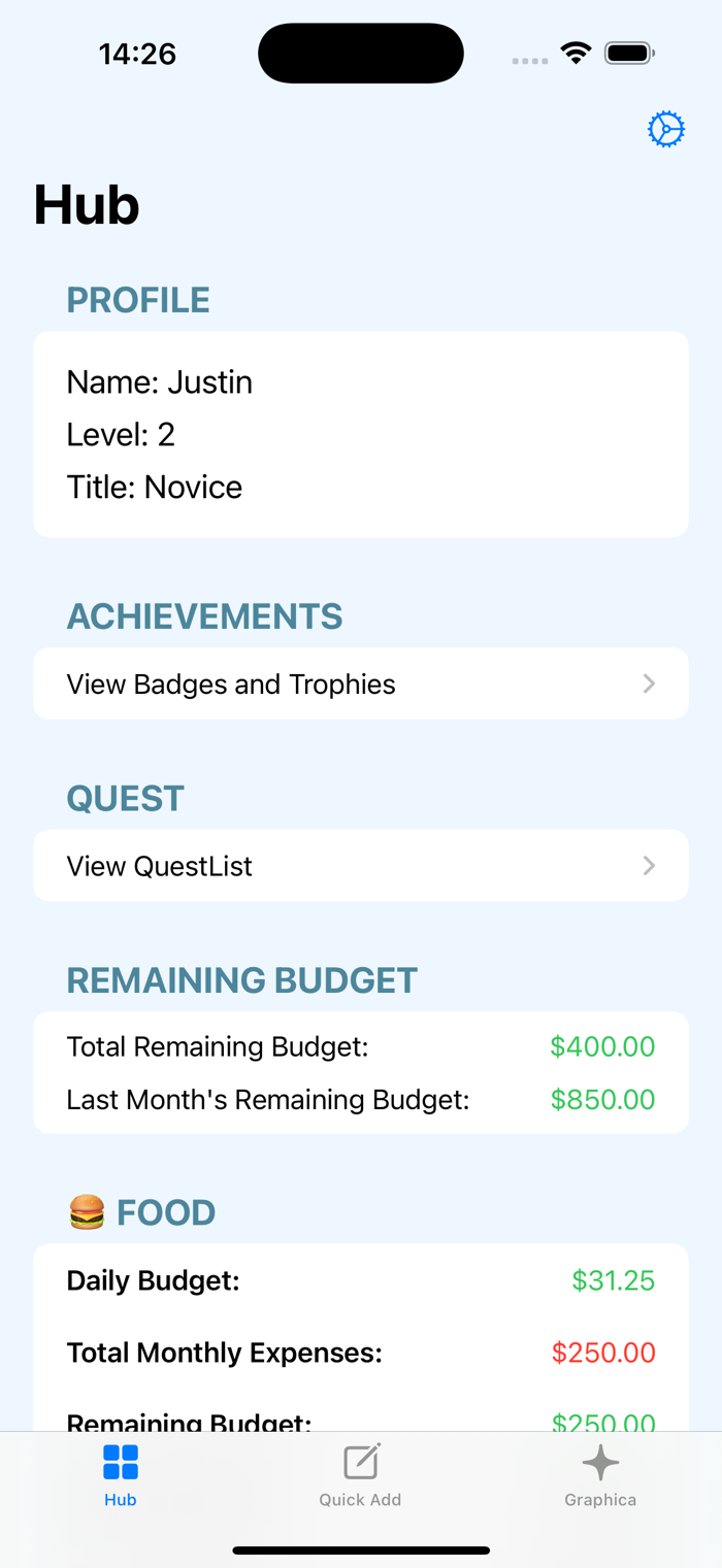- Gamification Elements – Earn levels, titles, and achievements for managing your budget
