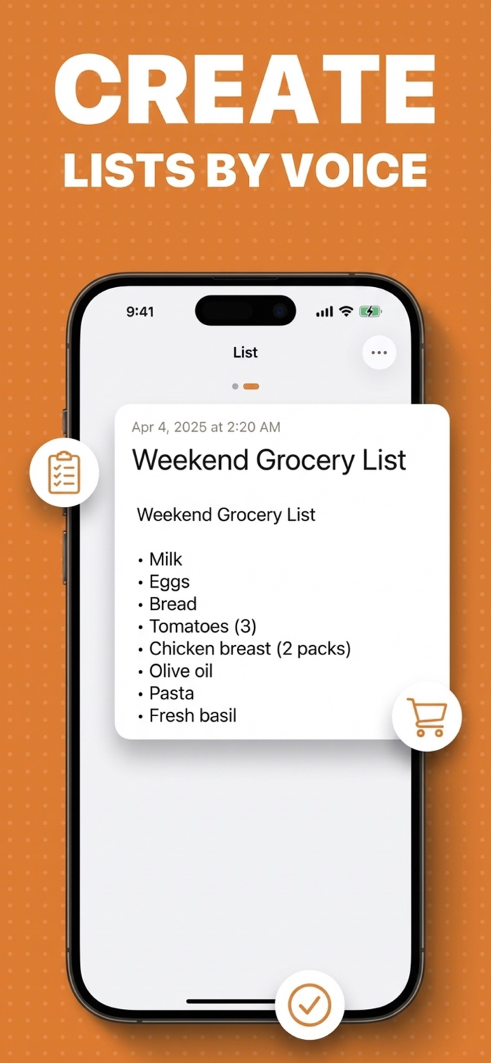 • Create grocery lists and to-do lists hands-free
