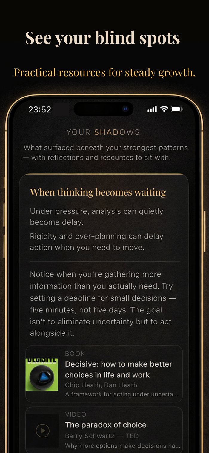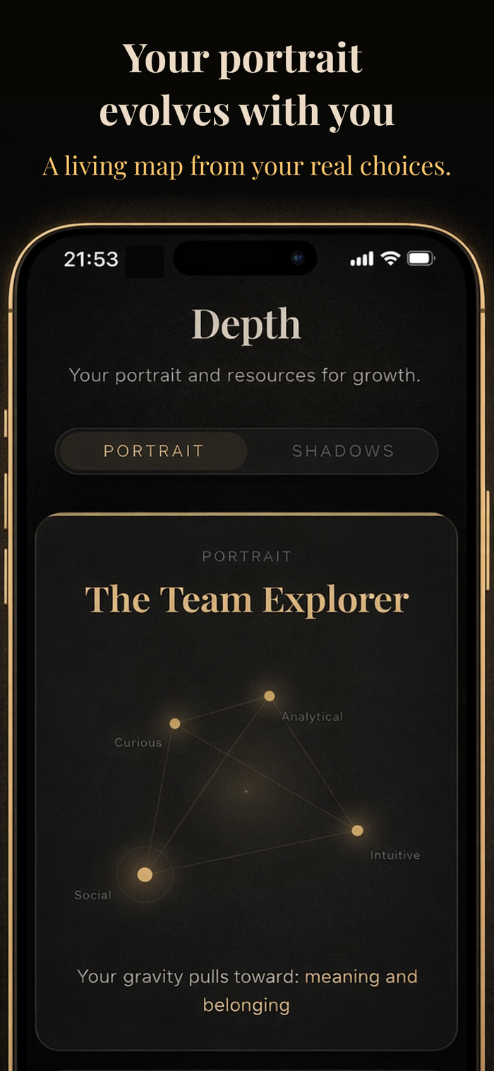 As you complete chapters, your patterns combine into a living Portrait — a deeper view of your strengths, tensions, and blind spots.