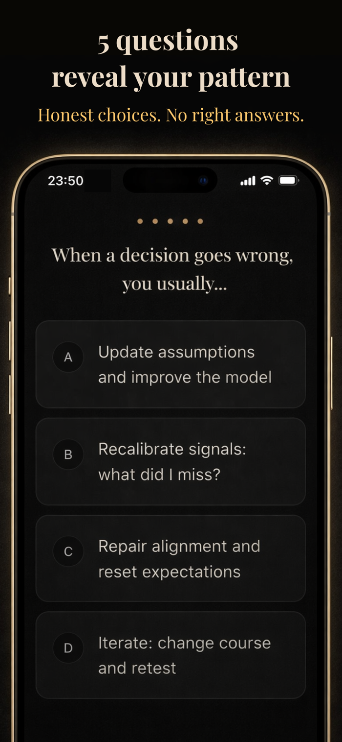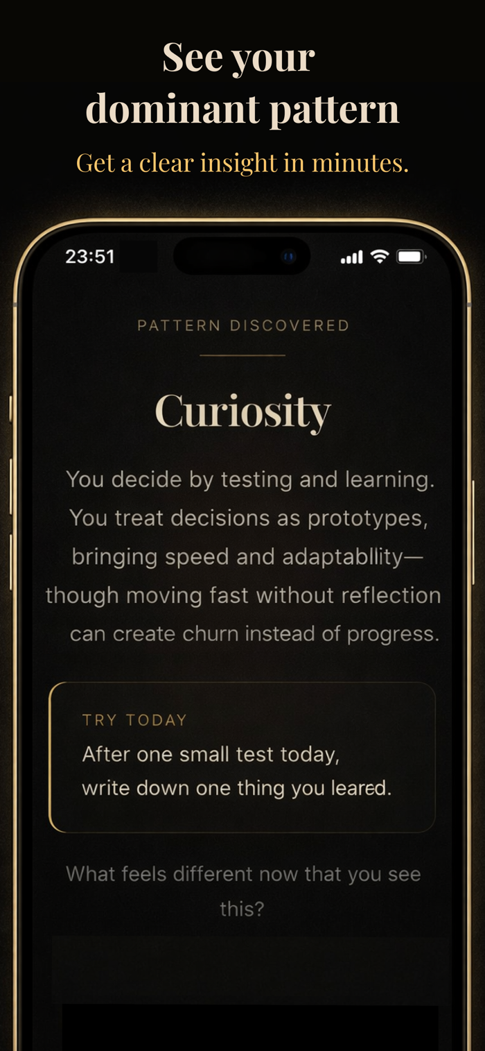 After completing a chapter, you uncover your dominant pattern — a clear reflection of how you tend to operate.