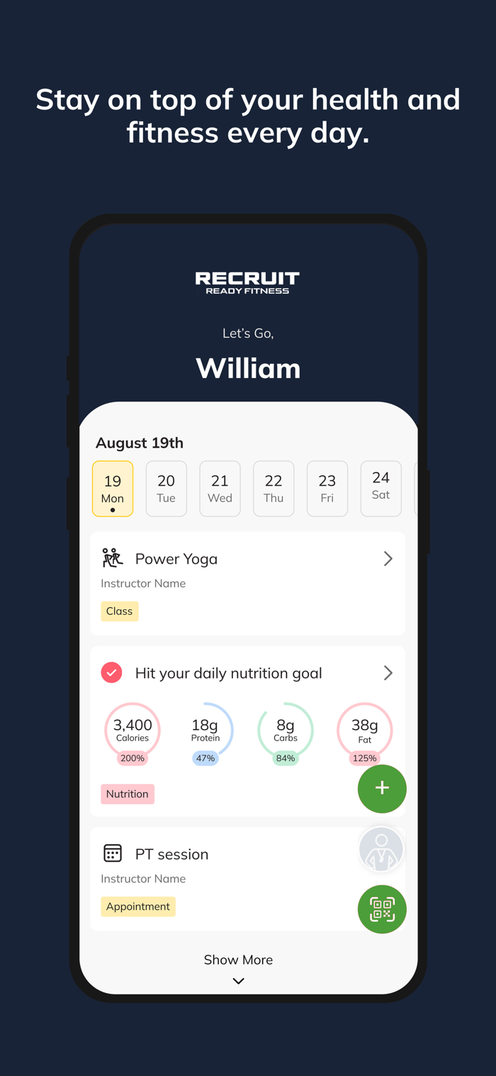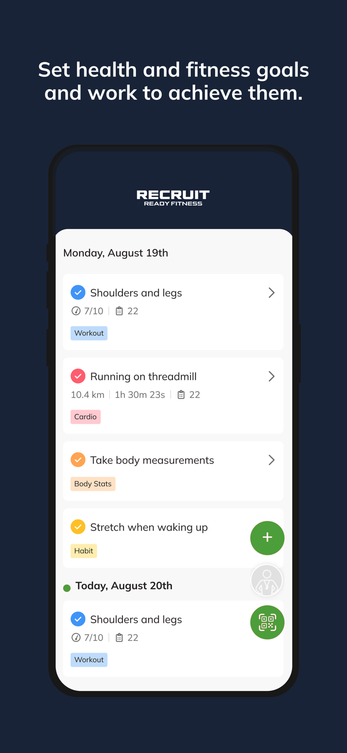 Recruit Ready Fitness App提供专为助您实现健身和健康目标设计的训练计划。能跟踪锻炼、营养、生活习惯、身体测量及结果,有教练协助。功能包括访问训练计划、跟练视频、跟踪饮食、掌握日常习惯、设定并追踪目标、获成就徽章、实时与教练交流、加入数字社区、跟踪身体数据、接收提醒,还能连接Apple Watch跟踪锻炼等。