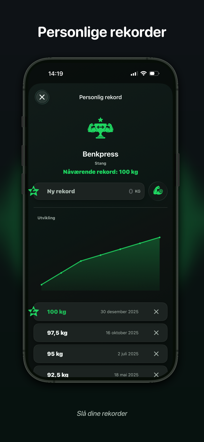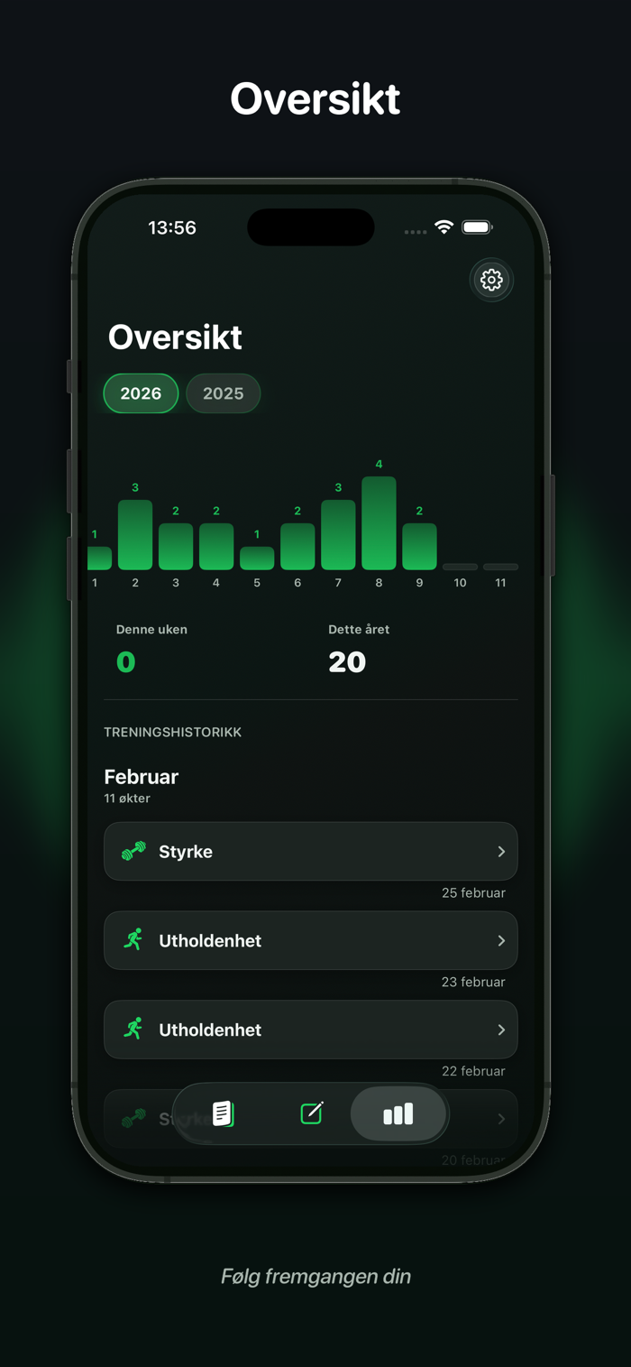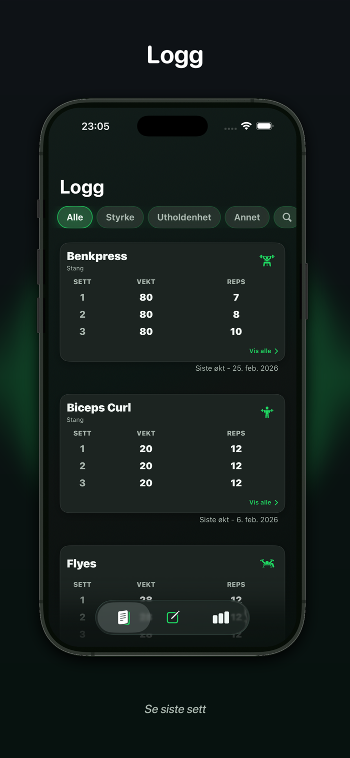 Din digitale treningsdagbok. Logg styrke og utholdenhet — enkelt, oversiktlig og helt på dine premisser.