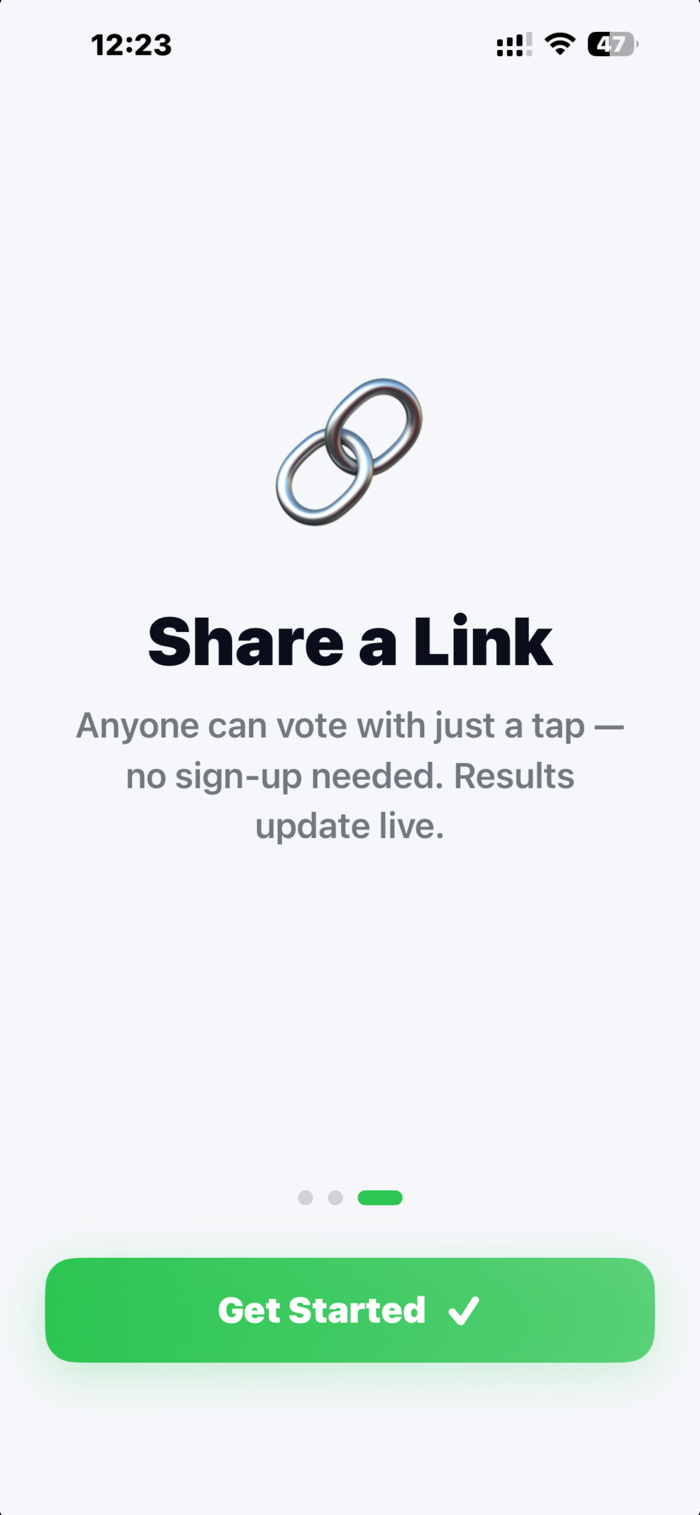 a link with anyone, and watch votes roll in live — no app required to vote.