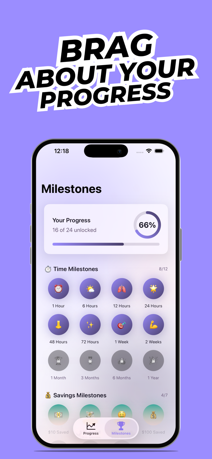 追踪戒烟进度,展示健康恢复,跟踪省钱情况