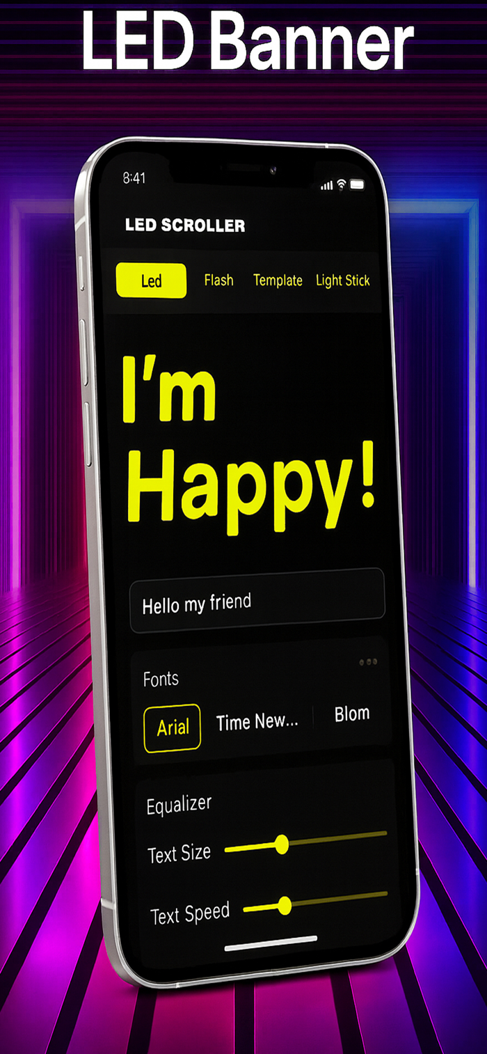 Type your text, pick your favorite style, and let it shine! With vivid colors, smooth scrolling animations, and dazzling neon edges, your screen becomes a live LED signboard in seconds. Whether you’re cheering at a concert, greeting friends at the airport, or sending love messages, LED Banner Edge makes every word pop.
