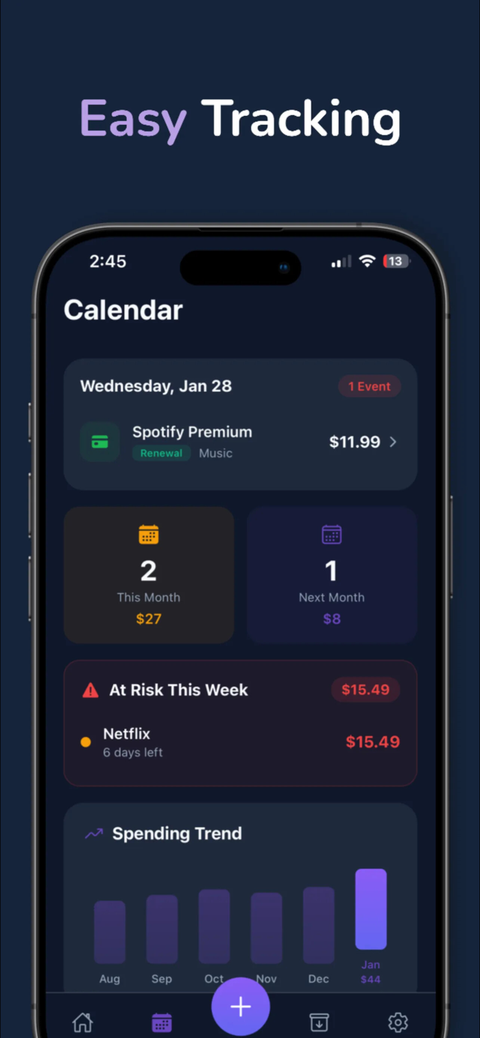 Snap a photo of your subscription receipt or confirmation email, and our AI will automatically extract the service name, price, and billing details. Adding subscriptions has never been easier.
