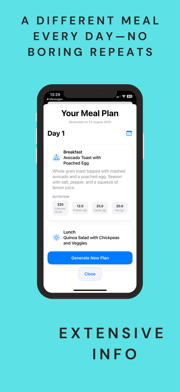 根据你的日程安排,为你制定个性化计划,提供简单美味的餐食、自动生成购物清单,并获得营养师的专业指导。功能包括针对目标、饮食、时间和预算的定制计划;营养师的专业指导;清晰的营养信息;通过智能替换进行每周规划;简单的购物清单;持久的动力;与苹果健康应用集成。只需告知你的目标、饮食和烹饪时间,即可获得一份切实可行的计划、一份随时可用于购物的清单,并能向营养师咨询答案。
