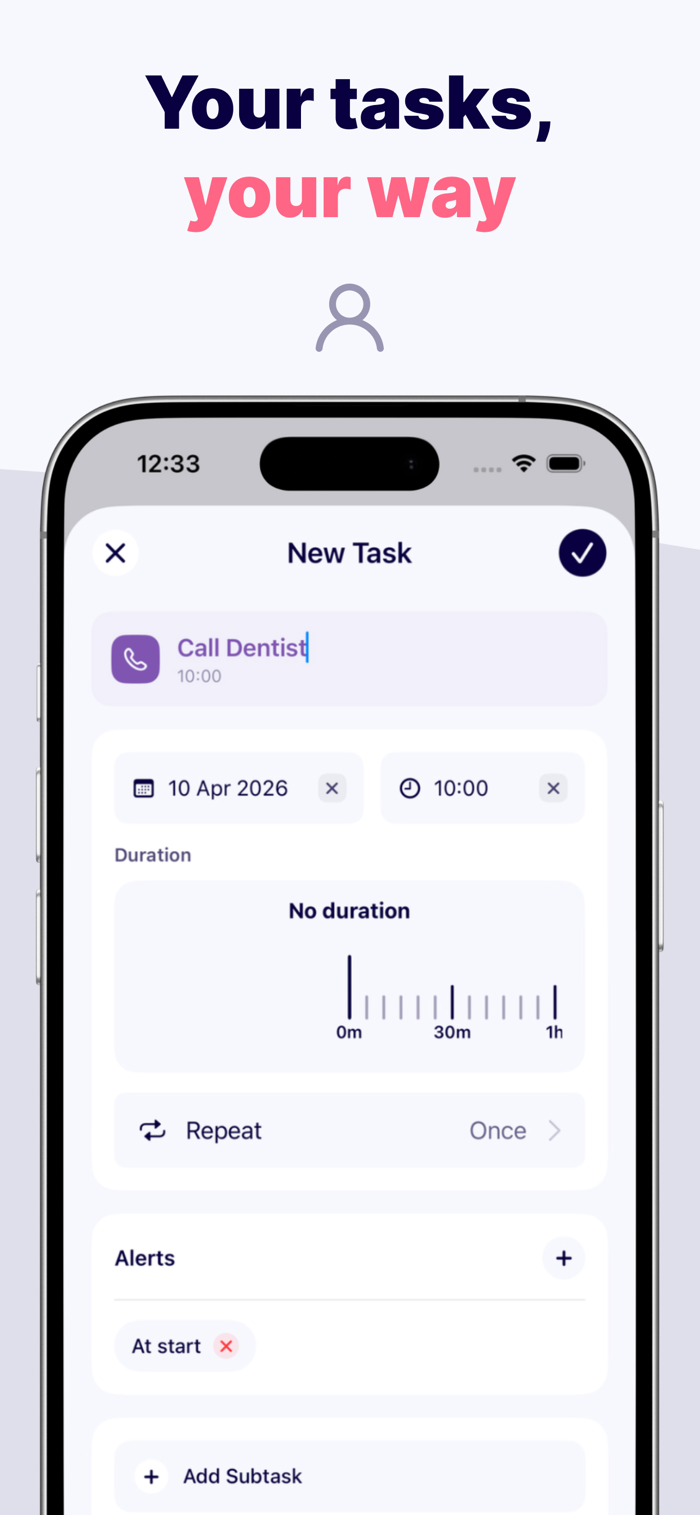 - Organize your to-do list with dates, times, subtasks, and reminders